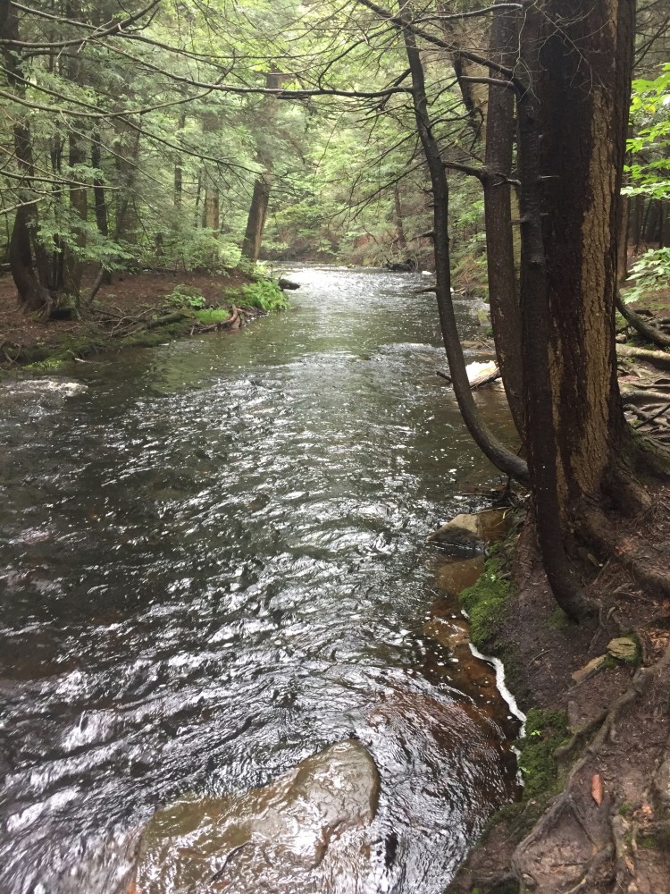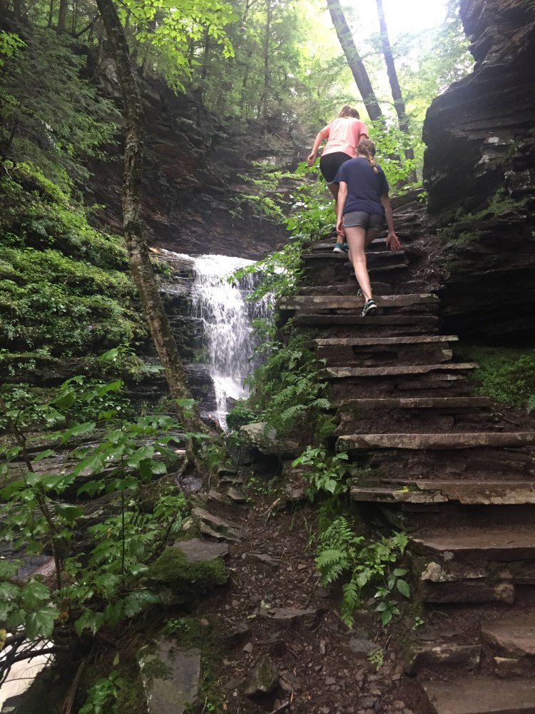 Elevation and distance stats of our hike thanks to Emily’s Garmin watch. As it shows the first half of the loop beginning at Mohawk Falls is a downhill hike and then you start going back uphill at the turn around point. We all said we would rate this hike as difficult due to the terrain but it wasn’t hard on our bodies. There were just tons of slick, wet, steep steps and rocks. I would definitely not recommend taking a dog on this trail I don’t know how you could walk it unless the dog were carried for some of it. We did see one dog but it was small so I assume it’s owner tried carrying it down some of the super narrow and steep parts.