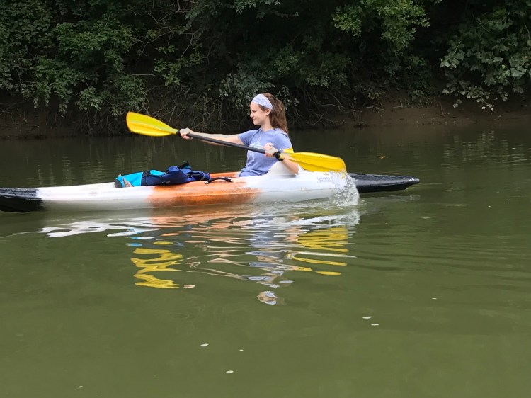 This past weekend Jeff and I had plans to go see a sunflower field in Deerfield township Ohio. Because we were driving an hour and a half to the Cincinnati area we decided to do a kayaking trip while we were there. We made reservations the day of at Loveland Canoe and Kayak. We paid $30 each to go on the “Castle” trip. It’s called the castle trip because it passes by a historic castle in Loveland which you can also take a tour of. The kayak company shuttled us to the beginning and after that we were on our own and kayaked 5 miles back to the outfitter. It was a very laid back trip! We could barely see the castle from the river but that was okay! It would’ve been cool to tour it but we didn’t have time. Turns out the sunflower field was no longer there but the kayaking was worth it! There were a few very small rapids along the river that were fun as well.
