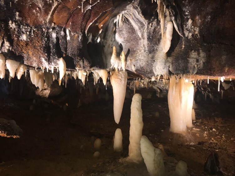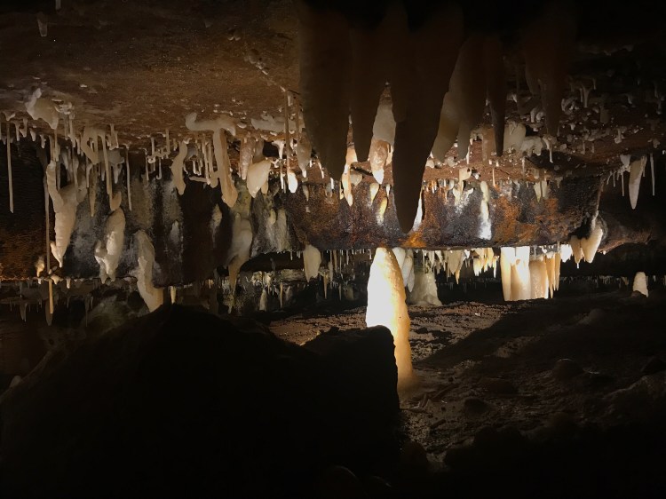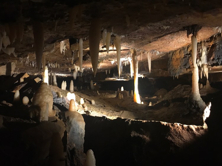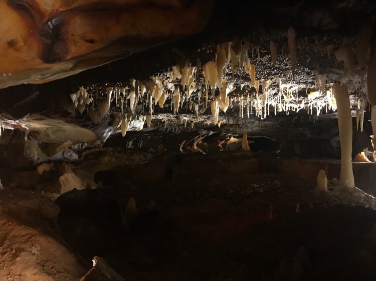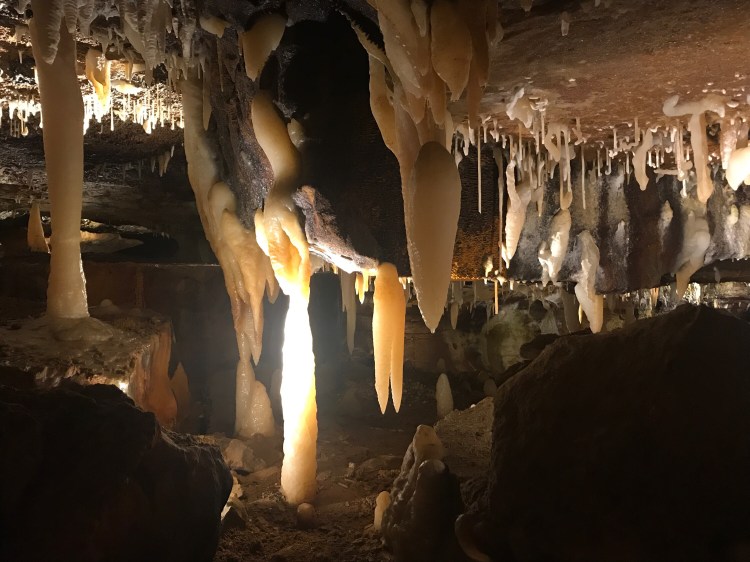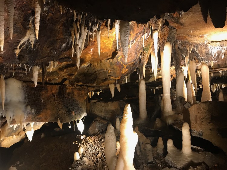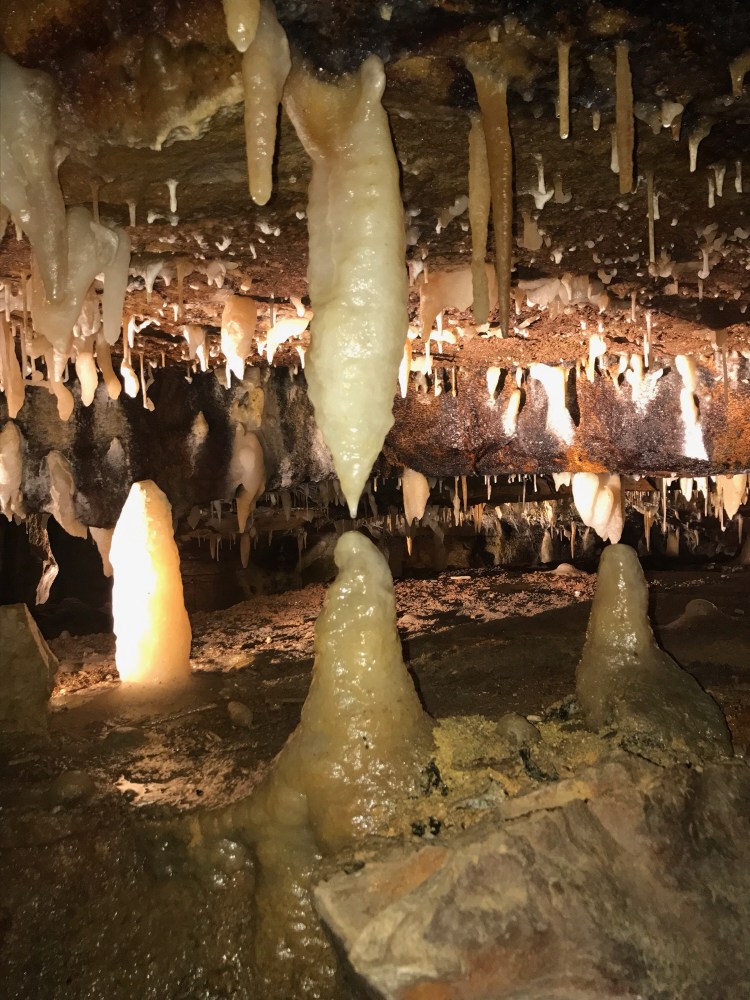 Jeff and I visited Ohio Caverns in May as part of a staycation in Columbus. These caverns, located in West Liberty Ohio, are known as America’s most colorful caverns and rightly so. We did both the historic tour and the natural wonder tour. If you take the time to visit this place I definitely recommend doing both tours. The historic tour explained the history of the caves discovery and how it came to be the business that it is today. This part of the cavern doesn’t contain stalactites or stalagmites since most of them were removed by the early explorers and they take years to regrow. The natural wonder tour contained beautiful cave features and thousands of colorful cave formations including Ohio’s largest stalactite. I’m quite happy with how some of the pictures turned out I think they could go on a post card! The tour guides were very friendly and quite knowledgeable.