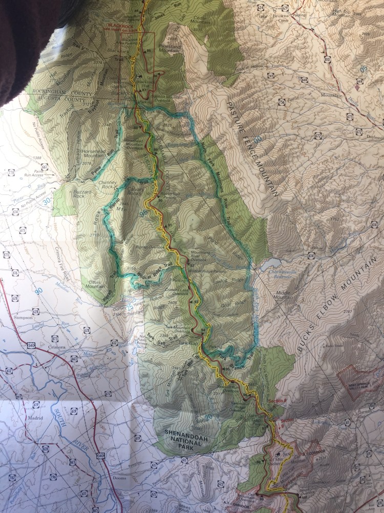 When we finally got to the park we stopped in at the Byrd visitor and information center to talk with the rangers and set up a back country permit for the two nights we would be spending in the forrest. The trip leader and VP of the club, Katie had already selected a route for us off of the national park’s website. It is really nice that the park already had some suggested back country routes set up considering the park has 500 miles of trail to choose from. The rangers provided us with a simple paper map of the trail but Katie purchased a much more detailed map of the section of the park made by an Appalachian Trail club. If you are backpacking in the park I highly suggest purchasing a nicer more detailed map. It was $8 and very good quality.