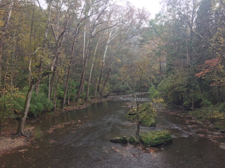 The weather was chilly but not unbearably cold. It was supposed to rain all day but it barely sprinkled. All the trees and the ground were very wet but we found that it made the color of the trees stand out more against their dark wet trunks.