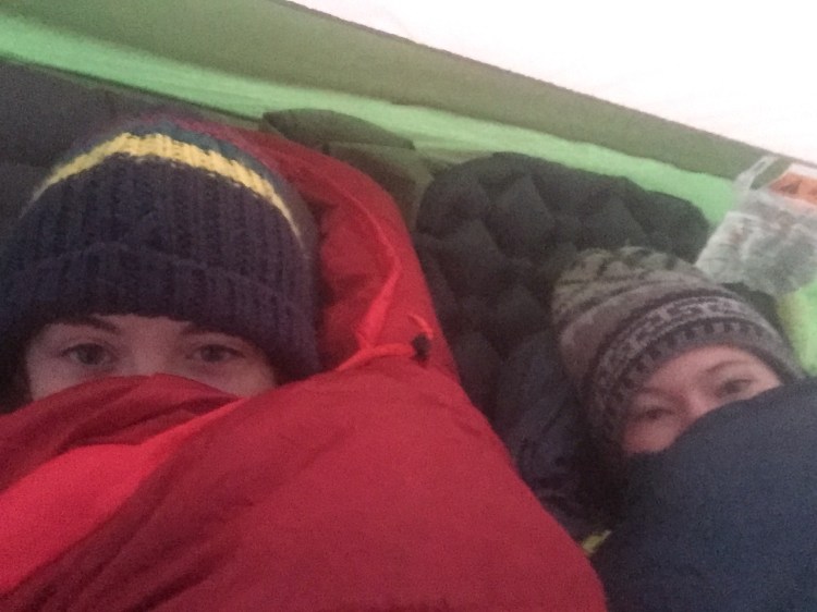 Caroline and I both had sleeping bag liners and thought they worked fantastic for the trip! We both have the Sea to Summit Reactor Extreme. It seems really thin and I was questioning how it would really make my bag that much warmer. When I was using it I felt that it made a huge difference in the temperature range of my bag. Would definitely recommend it to anyone who is going camping in the winter.