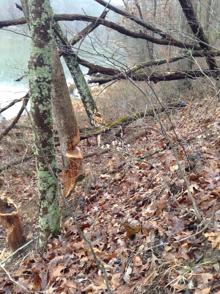 Beavers (assumedly) gnawing away at the trees! This is the first time I have ever seen this, I thought it looked cool.