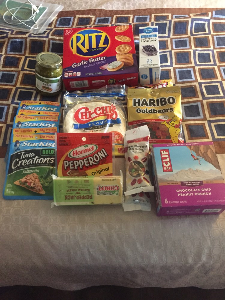 At the grocery store, my resupply was pretty simple. I got tuna, crackers, relish, cheese, pepperoni, cliff bars, trail mix, ziploc bags, and gummies, as well as fresh fruit and vegetables to eat for lunch tomorrow. It was hard to tell whether or not I was going to starve or if I bought too much food. I will learn what I need as I go.