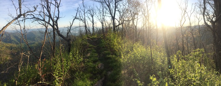 This morning I woke up to noises outside my tent and the light of a headlamp. I was so confused because I thought it was the middle of the night. I poked my head out of my tent and saw that it was Creature getting his bear bag down. I looked at my watch and saw that it was 5:50am. At that point I decided to get ready for the day too since I slept well and didn’t anticipate falling back asleep. Creature got on the trail first but I was shortly behind him. We started hiking before 7am. As the sun came up Locks yelled out of the shelter ” what about early bird!?” A trail name suggestion. I took it.