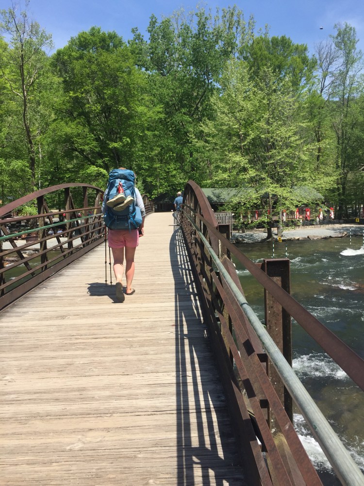 When I was less than a mile from the Nantahala Outdoor Center (NOC) I took a bad fall and tumble. I was thinking about getting to my destination when I took a giant step downwards and my ankle folded inwards. I feel straight down and rolled a little bit. I honestly thought I fell so hard I broke my ankle. I was surprised I didn’t here a “SNAP!”. I laid there for a moment waiting for the pain to come but my foot was just numb. I got up brushed myself off and noticed my knee was all cut up as well. I continued hiking paranoid that I would start to feel pain from an ankle injury soon. The fall really scared me and made me think about the reality of how easy it would be to break a foot like that and have my whole thru hike be over. I was also very thankful to be so close to town. It would hurt to have to walk out several miles from the forrest with a broken foot.
