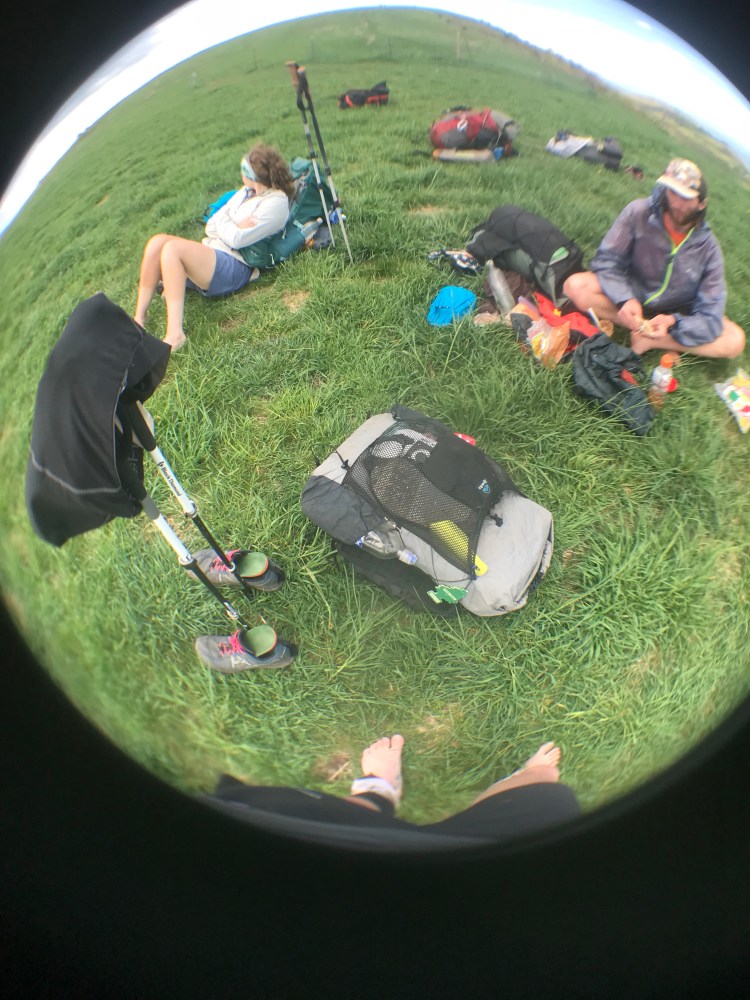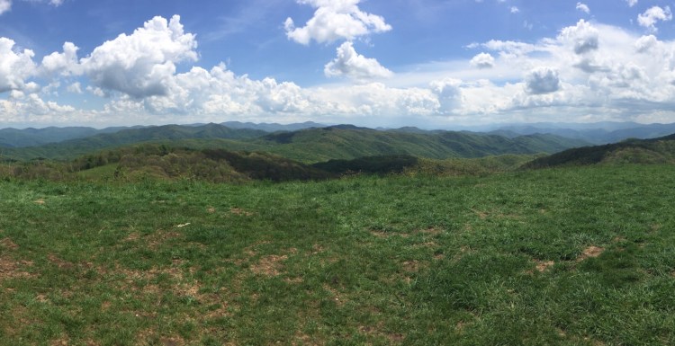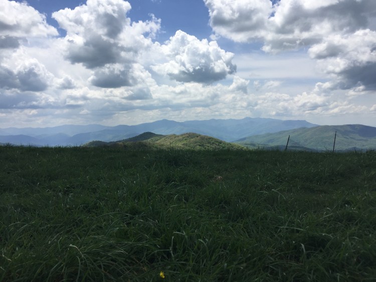I reached Max Patch at 1:30. I sat up there for an extremely long time enjoying the view. I really wanted to cowboy camp on the summit but it is dangerous if the weather is not good because you are the only thing taller than a blade of grass for a significant amount of space. Cowboy camping means camping without a tent. In other words just laying down in your sleeping bag and staring at the stars. Flamingo and Ethan joined me at the view and we all hung out for a while until we saw a rain storm coming in. Whenever you are at high elevation and a storm starts it always sounds like the thunder is coming from right beside you instead of above you. I hiked the last 2 miles in my crocs again, however this time I took multiple falls because I slipped in mud.