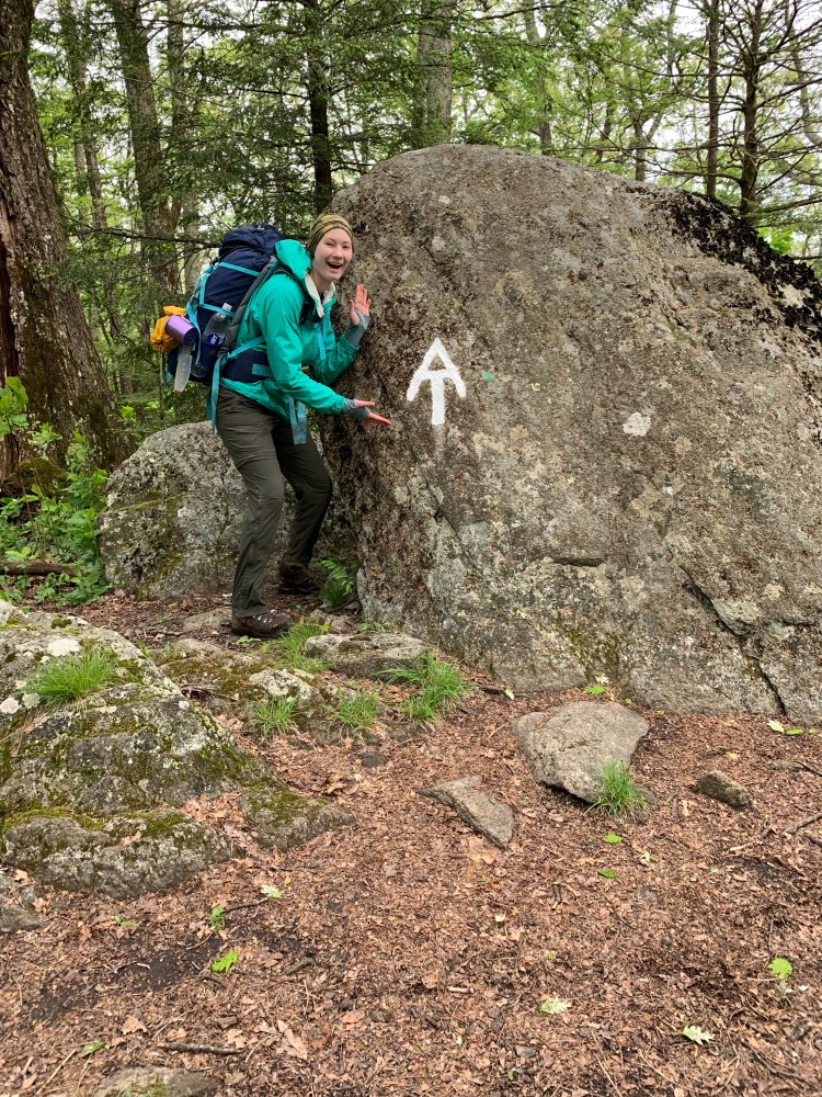 We continued our hike and took many breaks. Something that made me laugh today is that we all sounded like a bunch of cows walking through the woods. Emma and Caroline have metal objects (a trowel and coffee cup) hanging off their packs that kept clanging together. Every step they took made so much noise! I have a trowel hanging on my pack too but it doesn’t hit anything to make noise. If you are wondering why we were all carrying trowels aka poop shovels they are to dig a cat hole to go to the bathroom in. This is a common leave no trace practice that people in the outdoors follow so that you don’t run into human waste in nature as much, but it still happens.