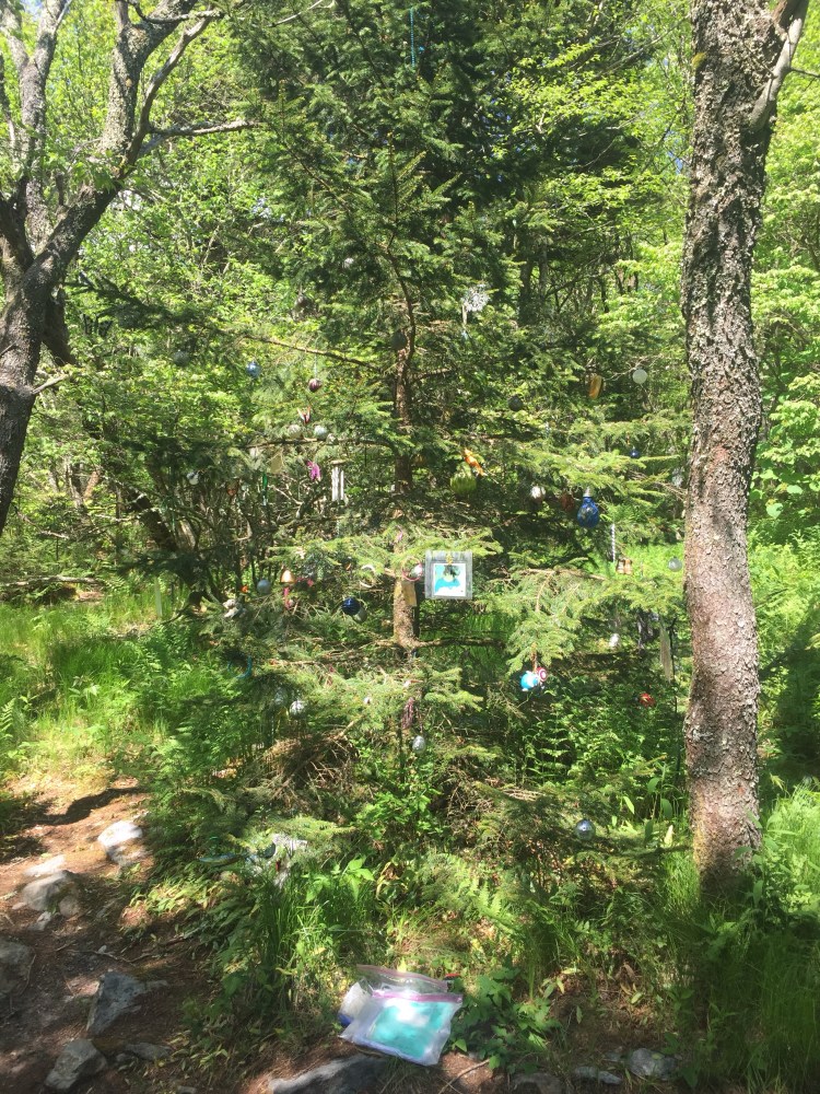 After beauty spot we had a climb of Unaka Mountain. There were no views at the top but the forrest was beautiful. It reminded me a tiny bit of the smoky mountains. There were lots of old pine trees with moss which I loved. Near the top of the mountain we ran into a tree decorated with ornaments. It was in memory of a 22 year old biker who had committed suicide two years ago today. It was sad. There was a log book at the tree that many people who had similar stories had signed.