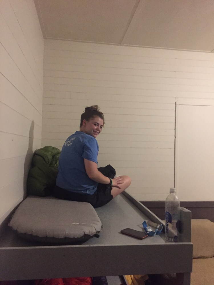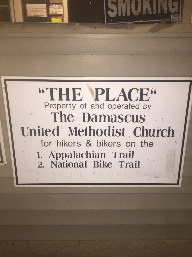 This morning Emma and I hit the trail right at 7am. We were really excited to get to town, we were looking forward to the pizza buffet for a long time. We quickly made it to town by 2pm. We crossed the Tennessee/ Virginia border and took one major break to get water. Water has been scarce on the trail for the last 40 miles and it has been really hot outside. We saw a black bear (#5) run across the trail about 6 miles from town. The first thing we did when we got into town was go to an outfitter to look for some things that we needed. They were out of all most everything since Trail Days was last weekend and 20,000 hikers were in town buying everything. Next we checked into the hostel known as “The Place”. This hostel is inside in a 100+ year old church and it is the oldest hostel on the trail. We met a hiker named Parker at The Place who made it to Damascus in 20 days! He said he has to average around 26 mile days every day to make it here and it is his first zero. At 4pm all of us got showers and walked to Pizza Plus to eat dinner. It was an all you can eat pizza and salad dinner for $8. We ate so much food and then went to the grocery store to buy food for the next few days. We had a great time hanging out. We were laughing about how we were the only people each other had talked to for a significant amount of time in a few days. Back at the hostel we just hung out and went to bed around 9.