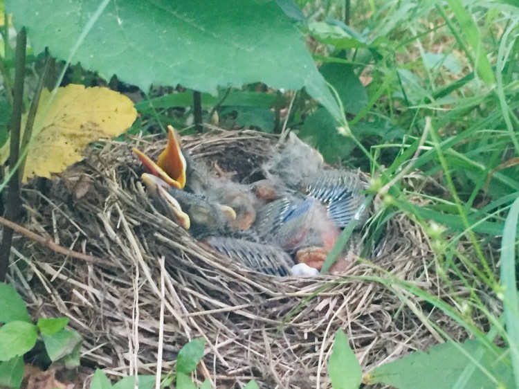 After I got my pack and said goodbye to my parents I began to climb a 2,000 foot scent up Bald Knob. My pack felt super heavy. I am carrying a lot of food and new gear. I went up the hill super slow because I felt so weighed down. I went over a few other mountains and a bald before I ran into someone who offered me a coke at a parking lot. It was a ridge runner I met before who is in charge of a huge section of the trail in Virginia. His name was Slim Jim and I might see him again patrolling the trail later on. I finally got to camp at 7pm and met a whole bunch of new people. At camp tonight was Caveman, Walnut, Rafiki, Eyore, Yoshi, and Geode. Yoshi showed me a nest of baby robins by his tent which were so cute! I tried to get a good picture of them. I wore my new shoes today which I like so far but can’t tell if they will help my feet or not. I feel like I need to walk 100 miles in a pair of hiking shoes before I decide if I like them or not.
