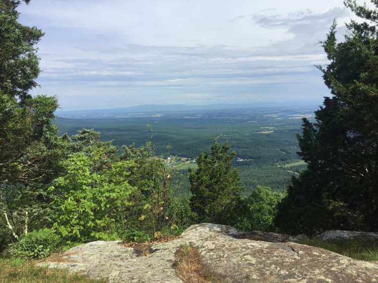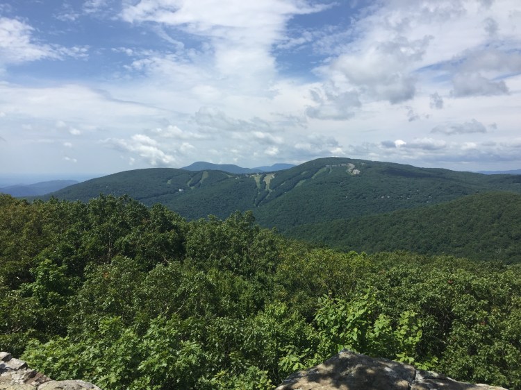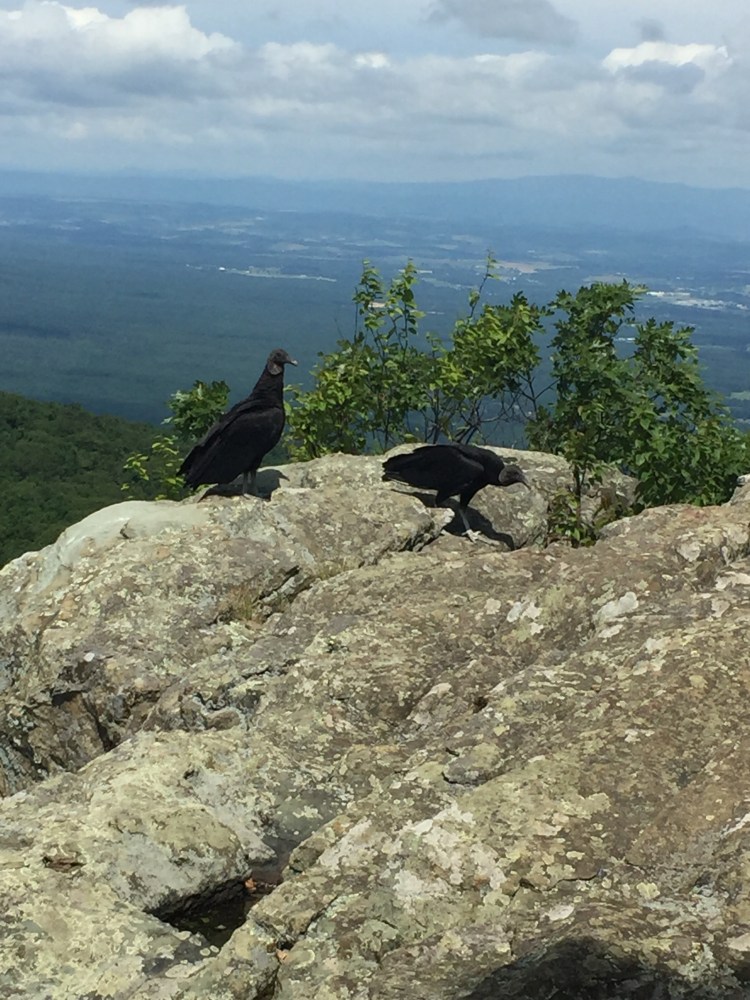 As I was hiking to Humpback Rocks Overlook I got a great view of the WinterGreen Ski resort. While I was looking at it, two giant birds landed on the cliff in front of me and got super close.