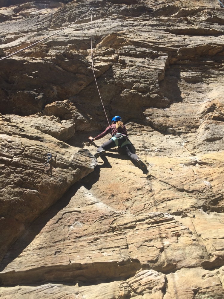 This weekend I got the chance to go Climbing in the Red with two of my best friends. I was happy we could all make it on one last climbing trip before Teresa and I graduate and I got to third wheel her and Nate one last time before they’re married! We climbed at Bruise Brothers in Muir Valley on Day 1 and then at the Gallery and Volunteer wall in the PMRP on Day 2. We camped at Miguel’s the traditional climbers campground. It has been almost two years since I’ve been to the Red and Miguel’s had a major facelift. They expanded their restaurant and remodeled the whole building. The weather was BEAUTIFUL the whole weekend. This was the most comfortable I’ve felt climbing outdoors which is a plus. Although I’ve been on several trips, outdoor climbing still gets me out of my comfort zone and that’s the reason I love it. Enjoy the pictures.