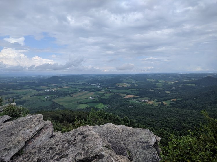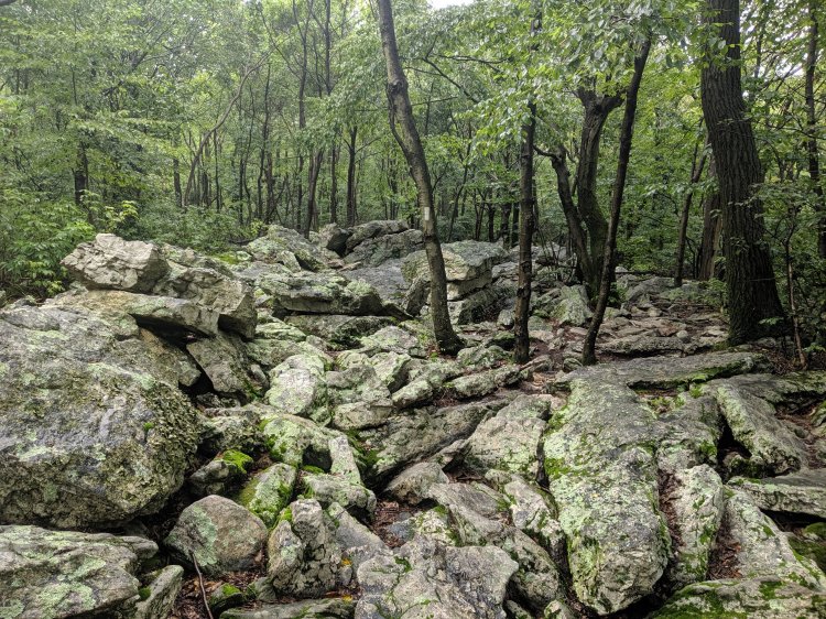I hiked all day except the last 5 miles by myself. I took so many breaks because I felt so tired. I was carrying a full five day resupply so my pack was a lot heavier. There were some really good view point I got to see called the Pulpit and the Pinnacle. The rocks continued which is nothing new but they were a lot bigger today and really slippery. I would use my hands alot to make sure I didn’t fall down and hurt my trail bone. About 3 miles in I got my trekking pole stuck in a rock. This happens all the time, but when I pulled it out of the hole today, the whole handle popped off which was a real bummer. I already had so many things wrong with my trekking poles anyways, this was icing on the cake. I could still use the pole but since the strap was gone I couldn’t let go of it without dropping it. Also I had to try really hard to hold onto the grip that was half gone and very slippery fr my sweat. I guess I will probably be buying a new pair of poles in a town soon. My poles are also bent, the tips have worn away, and the power locking adjustent system isn’t staying in place. As a result my poles shorten about two-five inches about once or twice a mile. I’ve been having to constantly adjust them which is super annoying. Because the tips are worn off, they have almost no traction either. It’s just time for me to get a new pair unfortunately. I don’t want to count on them supporting me on some of the bigger mountains up noth I can fall on and get hurt if they fail.