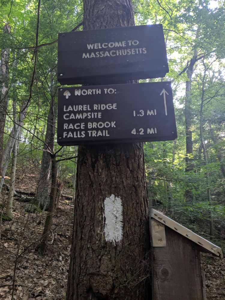 Day 108Brassie Brook Shelter to Tom leonard ShelterMiles Hiked: 23.2AT Milage: 1529.2Last night I had the shelter all to myself for the first time. I was bothered by mosquitos but it was bareable. It was the first night in a long time where it was slightly chilly enough to wear my wool sleeping outfit in my sleeping bag. I think it helped the bugs not bite me. Yesterday in town I bought natural bug spray and I used almost half the bottle before bed. I got ready really fast and got on the trail right before 7am. The first mountain I climbed was bear mountain which is the highest peak in Connecticut, but not the highest point. The highest point in Connecticut is actually 63ft higher on the side of a mountain that’s peak is in Massachusetts.