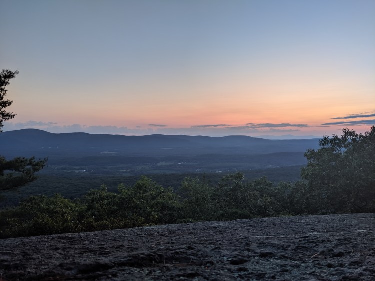 After bear mountain, I climbed Mount Race. Mount Race had these ledges with an awesome view of the valley and surrounding mountains. I imagine these ledges would be similar to Tinker Cliffs which I walked by in Virginia on a rainy day when I couldn’t see anything except fog. While I was taking a break on the ledge, Flamingo caught up to me after being seperated for about 4-5 days. He has been doing some big miles lately. He did a 32, 17, and another 32 yesterday. I can tell he’s been getting pretty tired from it. After the summit of Mount Race, we descended and immediately went up the steep and rocky climb of Mount Everett.