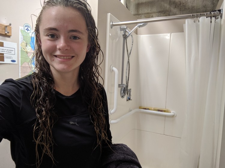 I finally left town around 3pm, alot later than I had planned. My camping options were a shelter 1 mile away (too close) or a shelter 10 miles away (kinda far) with a potential opportunity to stealth camp 7 miles away. I hiked up velvet rocks which was so steep that there was a rope tied along the side of the trail to help you climb up. I didn’t need it but I could see it coming in handy if it was raining. I kept playing leap frog (passing each other back and forth) with another hiker named Blaze. After one of my breaks, I met a new NOBO hiker named Luna and we hiked the last 6 miles together. She talked alot and it was SO NICE to have company while hiking. It was the first time in a very long time that I hiked with someone. She had a fast pace and kept me distracted from my foot pain which is exactly what I needed to make it to the shelter 10 miles away. At the end of the day we climbed Moose mountain as it was getting dark and my last 0.6 miles were done in an almost pitch black forest. Neither of us wanted to stop and get our headlamps from the bottoms of our packs because we were so close to camp but hiking in the complete dark was a bit challenging for me. I’m so thankful that the color of the trail blazes are white so it makes them a lot easier to see in the dark once your eyes adjust. We finally made it to the shelter where a man named “little hill” was camping all alone. We both set up our stuff in the shelter and I tried not to eat way too much food for dinner. I swear if I didn’t make myself close my food bag after a certain amount of time I might just keep eating until a lot of it was gone. Long days of hiking like today, especially with a fast pace up a mountain at the end, make anyone ravenously hungry.