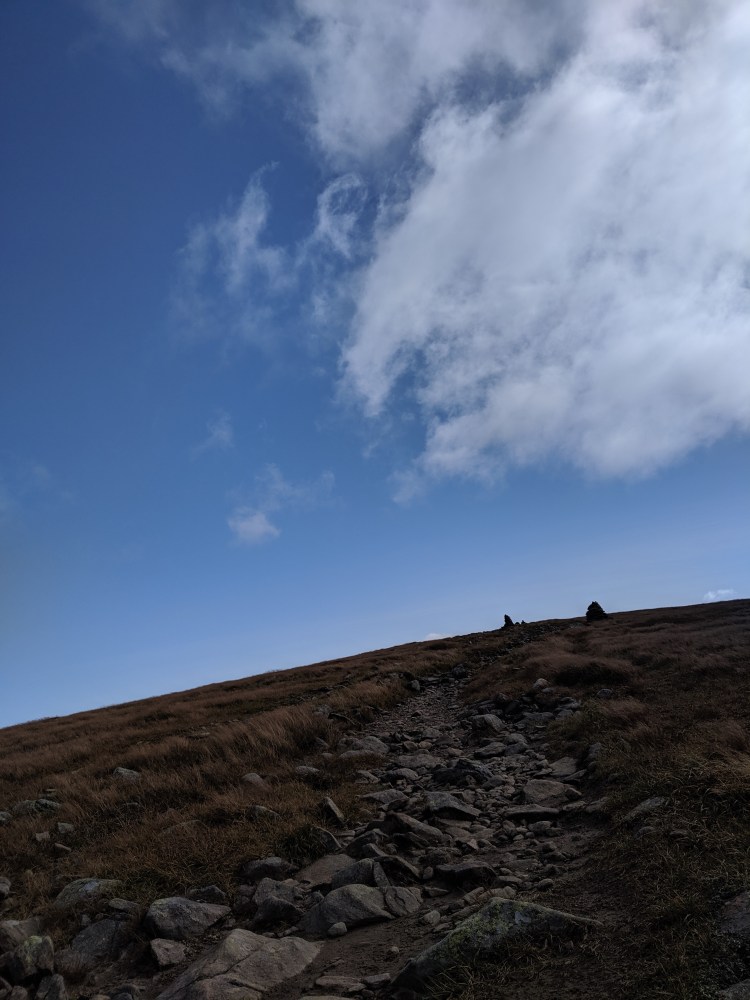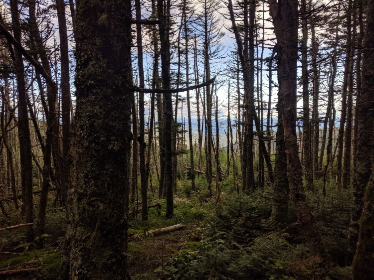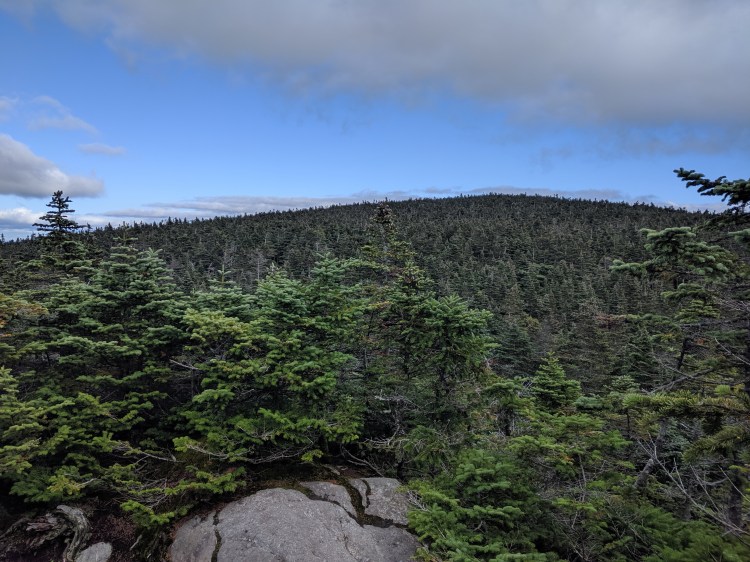 I got on the trail around 12:30 maybe 1pm. I had almost a six mile climb up 3800 feet to the top of Mount Moosilauke at 4803 feet. My first mile seemed pretty easy. I ran into a bull dozer tearing up a road and it seemed like part of the trail when I came to a small road crossing. I was a little overwhelmed and accidentally walked 0.25 miles the wrong way before I realized it and had to turn around. The state of NH really sucks at marking the blazes on the AT. I thought I was on the AT because they hardly have any blazes to begin with and it’s really confusing. Yesterday, I was on the trail and I saw white blazes to my right about 30 feet into the forrest and not near any trail. Apparently the trail had been relocated but the old blazes that are still in sight were never removed making it easy to get lost if you’re not paying attention, especially in the dark.