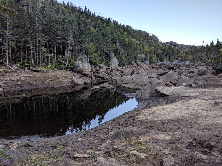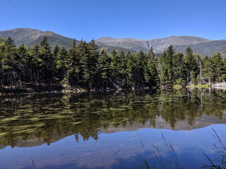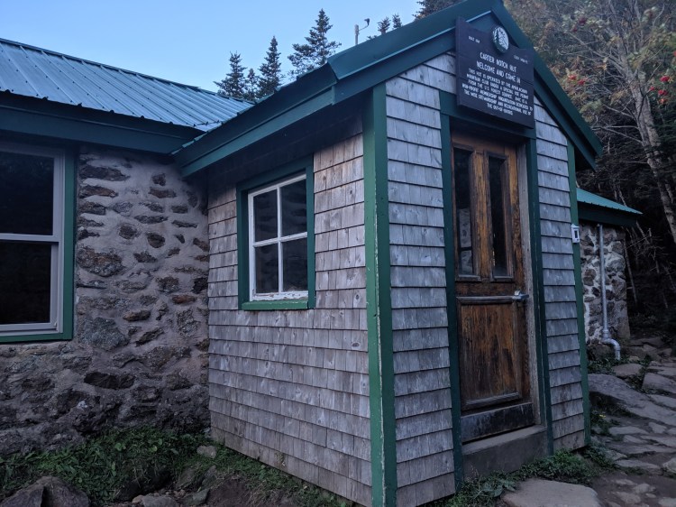 Today we spent the morning in town, starting with the hot tub first. Next was breakfast, showers, and sorting out gear stuff. We got back on trail around 11am and began our short day of hiking to Carter notch hut.The first mile was pretty flat and easy and it went past a beautiful pond. After that, the trail became almost vertical. I put my trekking poles away because the next 4 miles consisted of mostly hand over hand bouldering. Some parts were pretty exposed and it felt like it would be so easy to fall right off the mountain. If I didn’t have to balance a 35 pound pack on my back, the hike would have been a lot easier. As soon as I loose my balance with that much weight on my back it’s easy to tumble forward or backward. I did weigh my pack at the visitor center with all my food and water and it came out to 35 pounds.