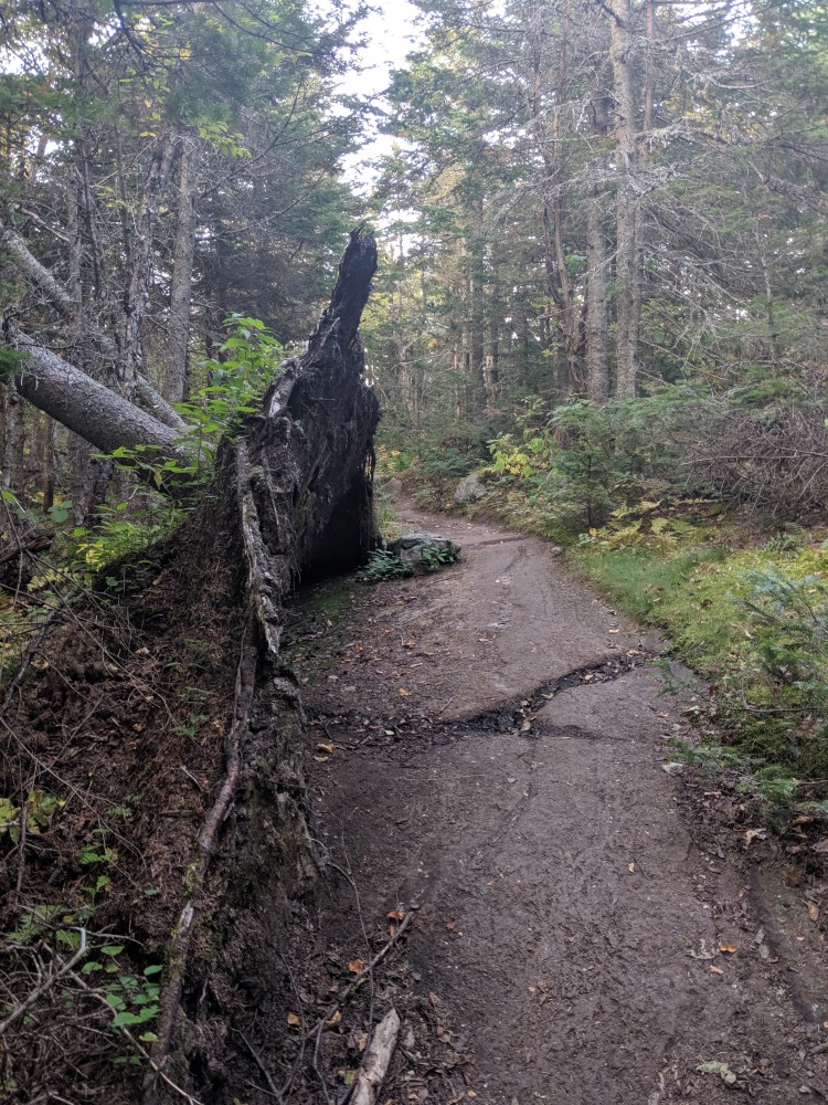 I hiked mostly uphill and went over mount Hayes which had great views of pine trees infront of the presidential range. I took tons of small breaks to rest my aching legs and dry off my shirt that was wet with sweat. Eventually I came to a pond where the trail was no clearly marked. I spent about 20 minutes bushwacking around in the woods because the trail wasn’t obvious at all. I was super frustrated because I had finally got into a good hiking pace and was set back so much by not being able to find the trail. Eventually I found it in a really weird spot. I was really angry and just wanted to stop hiking. I sat down on a ledge at a view to rest and debate if I should hike all the way to Maine or not. I had originally planned to but I was way behind schedule. I got on Instagram and saw that some friends of mine had summited Katahdin today and it motivated me to get up and keep moving. I found that the trail had been very poorly maintained in this whole section. I was getting cut up by branches and pulling myself over so many dead fallen trees. At one point the trail was covered in slick mud. Of course I slipped and fell in it multiple times. By the time I got to a shelter to take a break I was so over hiking for the day.