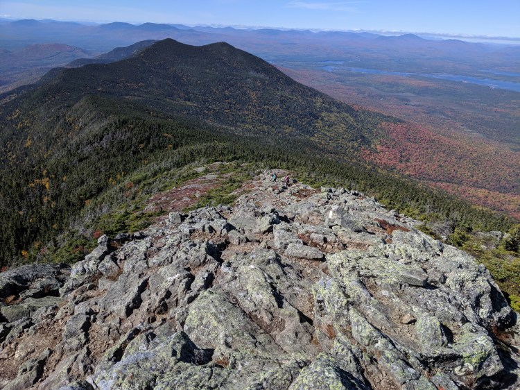 Once we finished the biggest climb of the day, the remainder was traversing the peaks of the Bigelow’s before descending to the shelter. The Bigelow’s were beautiful and freezing cold. I wasn’t expecting to be on an exposed Ridgeline for so long but that’s what happened. Luckily the weather was great and the sky was clear. Otherwise it would have been terrifying to be up there. I still feel scarred from my experience on the saddle backs. From the tops of the peaks I could see miles of mountains and water in the distance. Apparently you could see Katahdin today but it was so distant and faint I couldn’t tell exactly which peak it was.