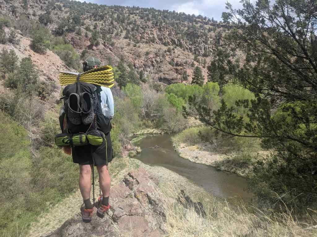 We looked for another hot spring that we couldn’t find again. At one point the trail climbed a little bit to a small over look. We still had to cross the river about 2-3 times a mile today. Around noon we hit the road we needed to walk to Doc Campbells. When we got there I collected my resupply box I sent myself and bought a burrito to warm up in their microwave. We were allowed to camp in their yard so we all set up tents and I paid $3.50 to take a shower! Jenga eventually showed up around 3:30, a half an hour before the store closed. I was so glad he caught up to us! And also made it in time to get hot food and his resupply as well. For this next section we have to carry about 7 days of food to make it 130 miles to the next resupply point in pie town. I’m not looking forward to how heavy my backpack is about to be.