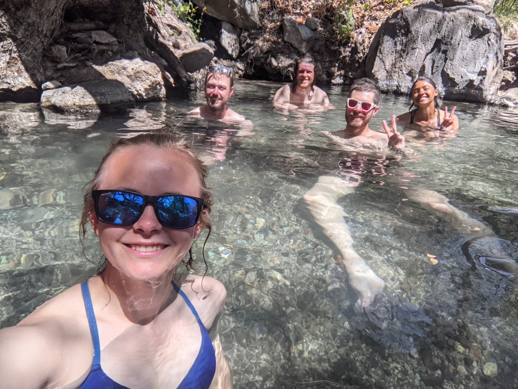 When I got to the hot spring 12 pack was waiting for me on the trail to make sure I didn’t miss it. I would have walked straight by otherwise. The hot spring was perfectly warm and not too hot. The water was very clear and almost had a blue tint to it. The five of us hung out there for about two hours. We met a family from aalberquere who’s son did the AT. They offered to do trail magic for us at El Mapis, where we will be next week. Free fall got their contact information to update them on our progress when we get to the next wifi connection. I really hope it ends up working out because this upcoming section of trail doesn’t have much water and we really need it.
