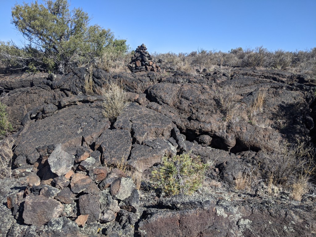 The first part of the day continued our long road walk down the gravel road past many ranches. Eventually we hit a small paved highway and stayed on it for 2 miles before hitting an actual trail in El Mapis. Once on the trail, the rest of the day was following Carins over a dusty field with intermittent grass and volcanic rock that really hurt to trip on. For about 1-2 miles we got to traverse a lava field that was so cool! I loved seeing the parts where the lava cooled in a ripple pattern. Ocasionally there were open grassy patches in the lava field or giant holes. Once I got out of the lava field section the blisters on my toes were absolutely killing me. I had to sit down to pop them and do some blister care. I limped for about a mile afterwards until my toes went numb.