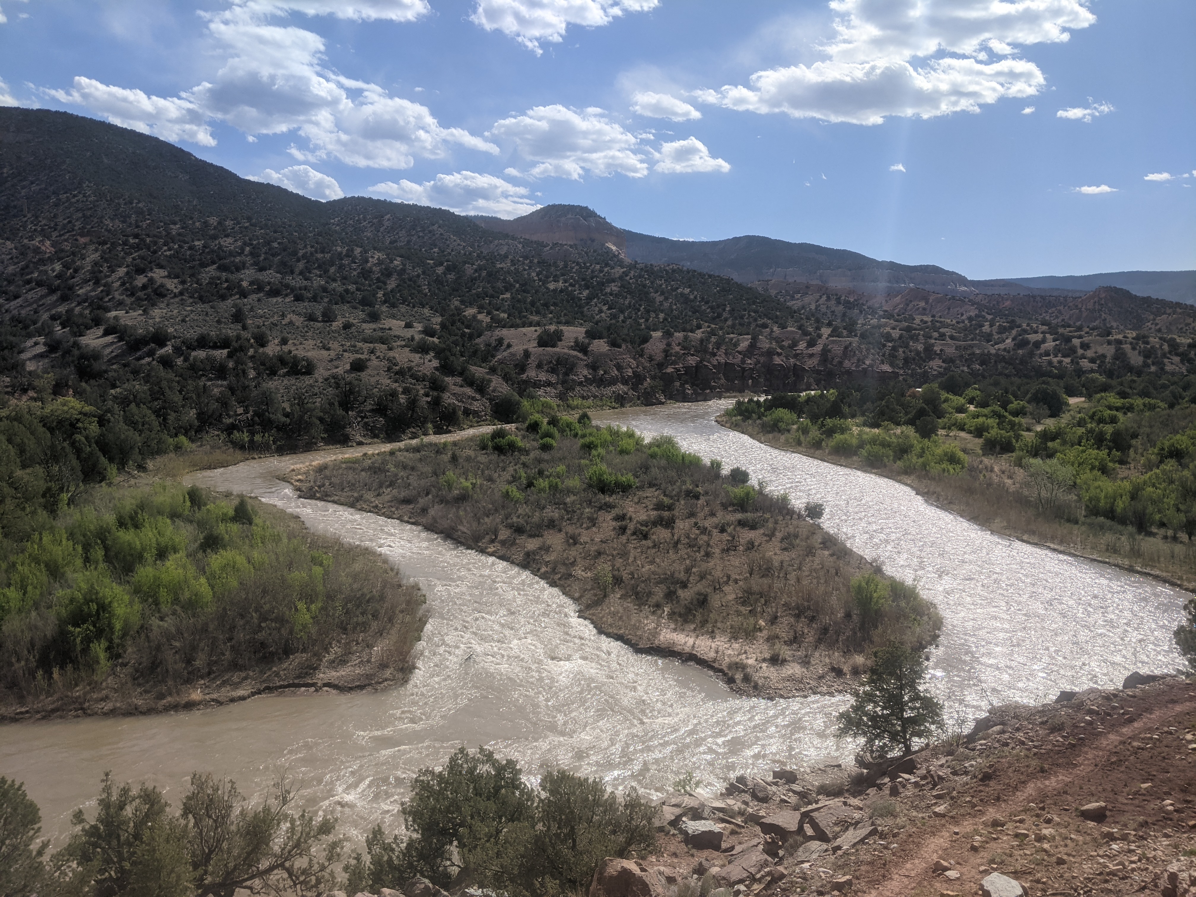 Eventually I crossed a bridge over the Chama River where Rockslide was waiting for me in his car. I sat down and took a break in one of his chairs and he gave me a cold tea to drink. He took my pack while I walked the last 9 miles on the road to the highway. From the highway he drove us to Santa Fe for the night for the start of my two zero days in a row! I’m so excited for some rest and excited to see Santa Fe.