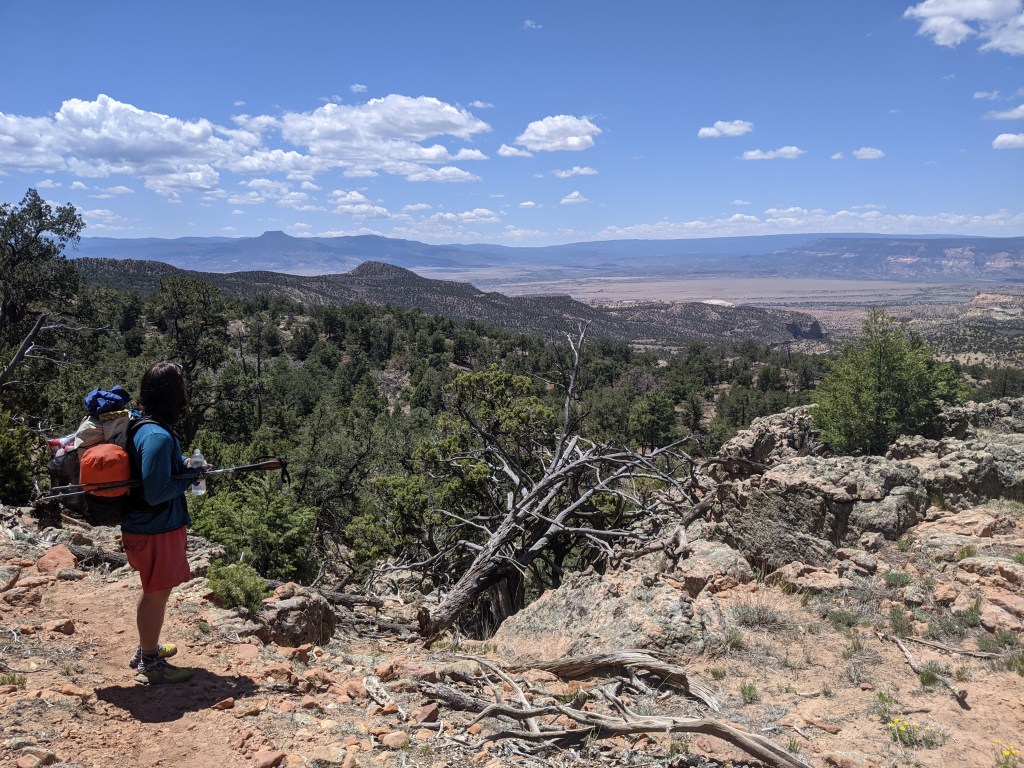 The ghost ranch alternate started as a road walk from where we were. We checked in at the front gate and passed a bunch of buildings where people can stay and visit a museum. Most of it was closed due to covid but things were slowly reopening. After stopping in at the visitors center for post cards and a bathroom break we continued to hike thru the property down the box canyon trail. After about 3 miles of being on the property we entered back onto national forest service land. I was laughing at how stupid it was for me to pay $10 for three miles of hiking but then again, I was paying $10 to not walk 8 miles down a highway. On the box canyon trail we were following a small stream. We accidentally missed a turn and ended up at a pool of water in the dead end of the canyon. We turned around and corrected our mistake. We continued to hike upwards to the top of a mesa. It was a hot day and after leaving the small stream there wasn’t much water ahead.