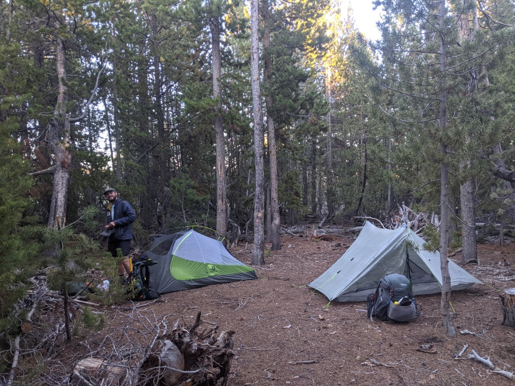 Itchy dropped 12 pack and I off at the trail around 6:30pm. She was really sad to say goodbye! I hope to see her again when I get closer to where she lives in Colorado. 12 pack and I then hiked until we found a good spot to camp because the sun was going down. We ended up finding a great cluster of trees that blocked the wind.
