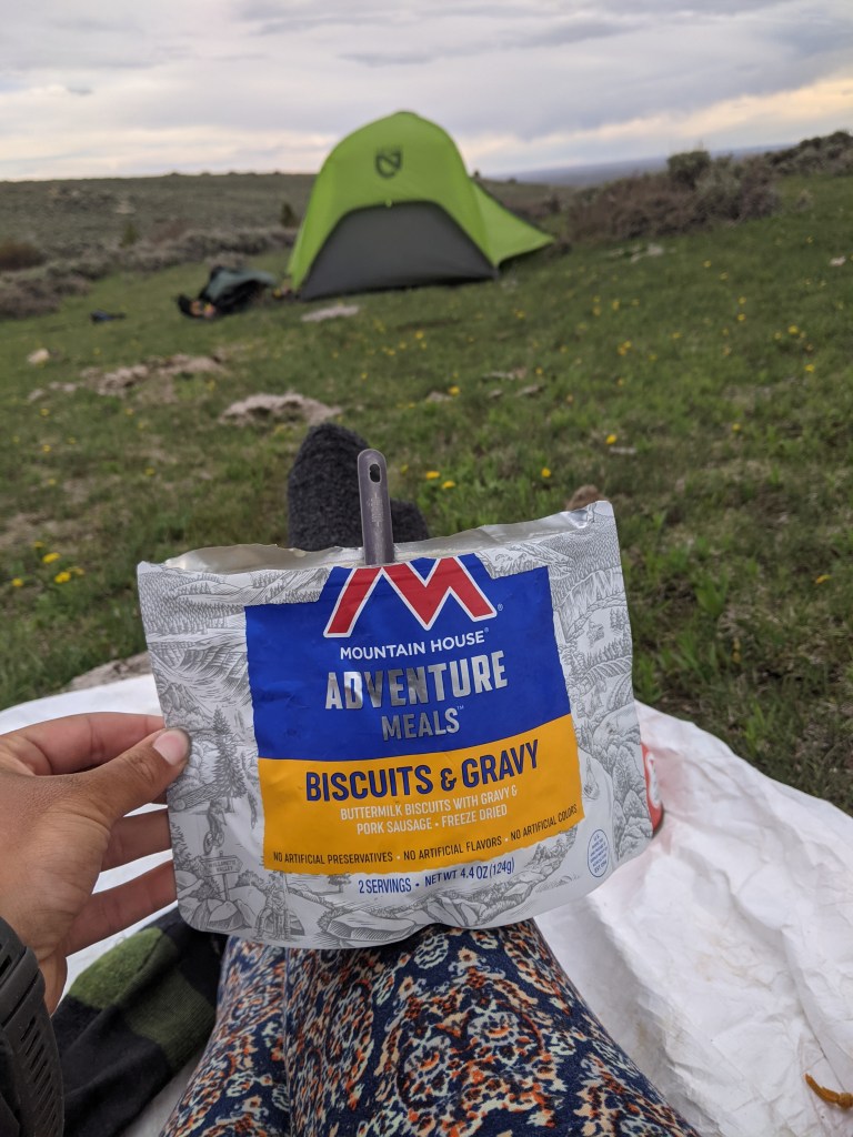 My feet were throbbing all day and it was really hard to go the last couple of miles. Right before camp I saw a very large weasel crawl into it’s den near a spring. I didn’t realize they lived out here but it explains all the large holes I have seen in the ground. When I finally got to camp I wanted to lay down and not move. Luckily I saved on of my most favorite meals for dinner because I was absolutely starving. Mountain House biscuits and gravy hit the spot! Thanks mom! I made sure to stretch and brush my teeth really well before falling asleep hoping I would wake up with a lot more energy.
