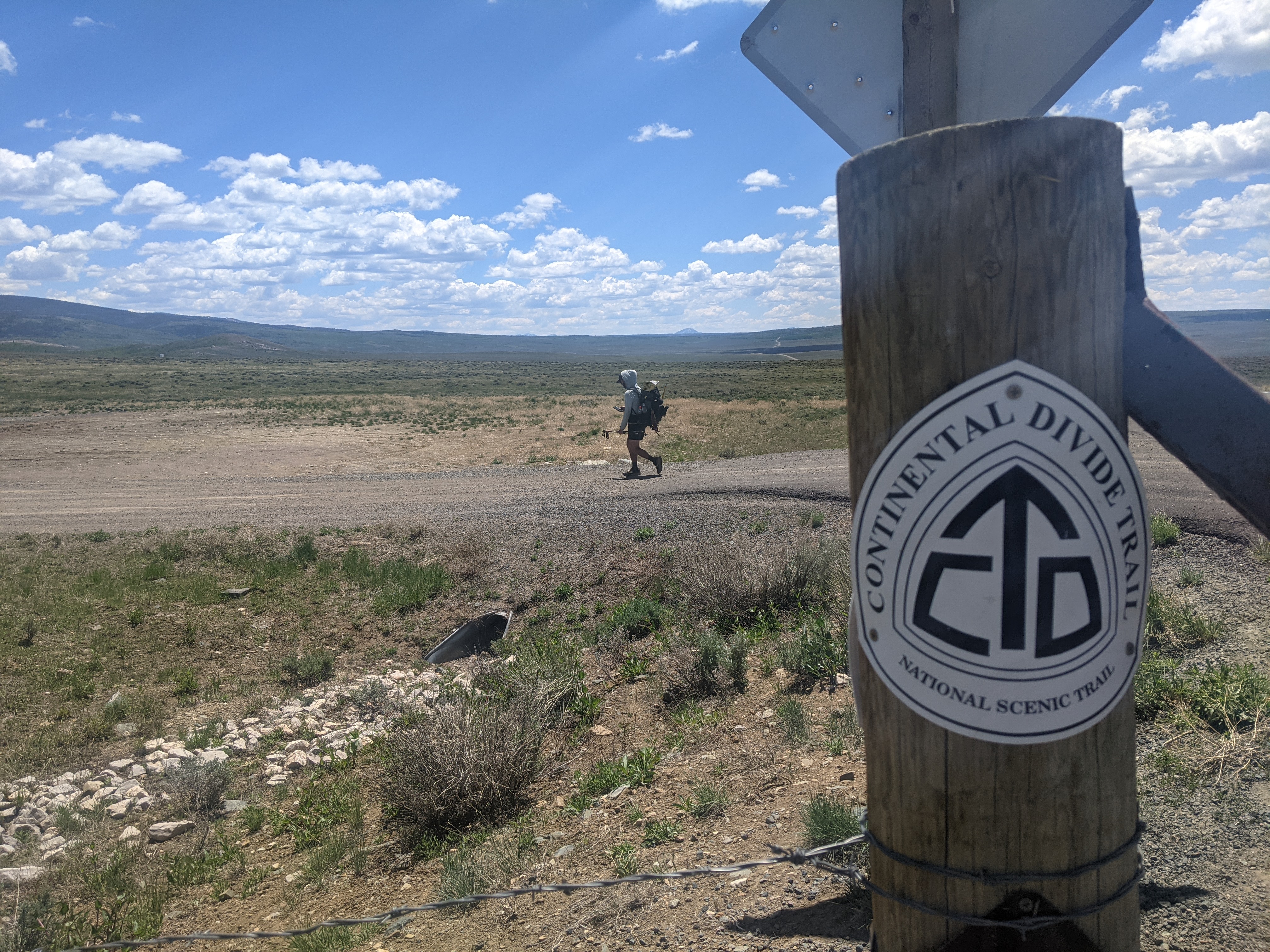 After the river I hiked up a very steep trail next to a fence before walking across a field and on to a highway. I walked on the highway for about 3 miles before hitting a dirt road again. I took a break around 2pm with Hummingbird and 12 Pack. Still no sight of Jenga. The day just kept getting incredibly hotter. I was eager to get to camp so I kept hiking even though it was at the hottest part of the day. I eventually saw some trees and shade for the first time in about 150 miles today! I didn’t end up taking advantage of it though. The last 10 miles to camp I felt like I was hiking so slow. My back was cramping up and I felt like I could tell that the heat was taking a toll too. I stupidly took all of my breaks in direct sunlight and felt like I was roasting. The longest one was on top of a ridge with a great view and good cell service so I felt like it was justified.