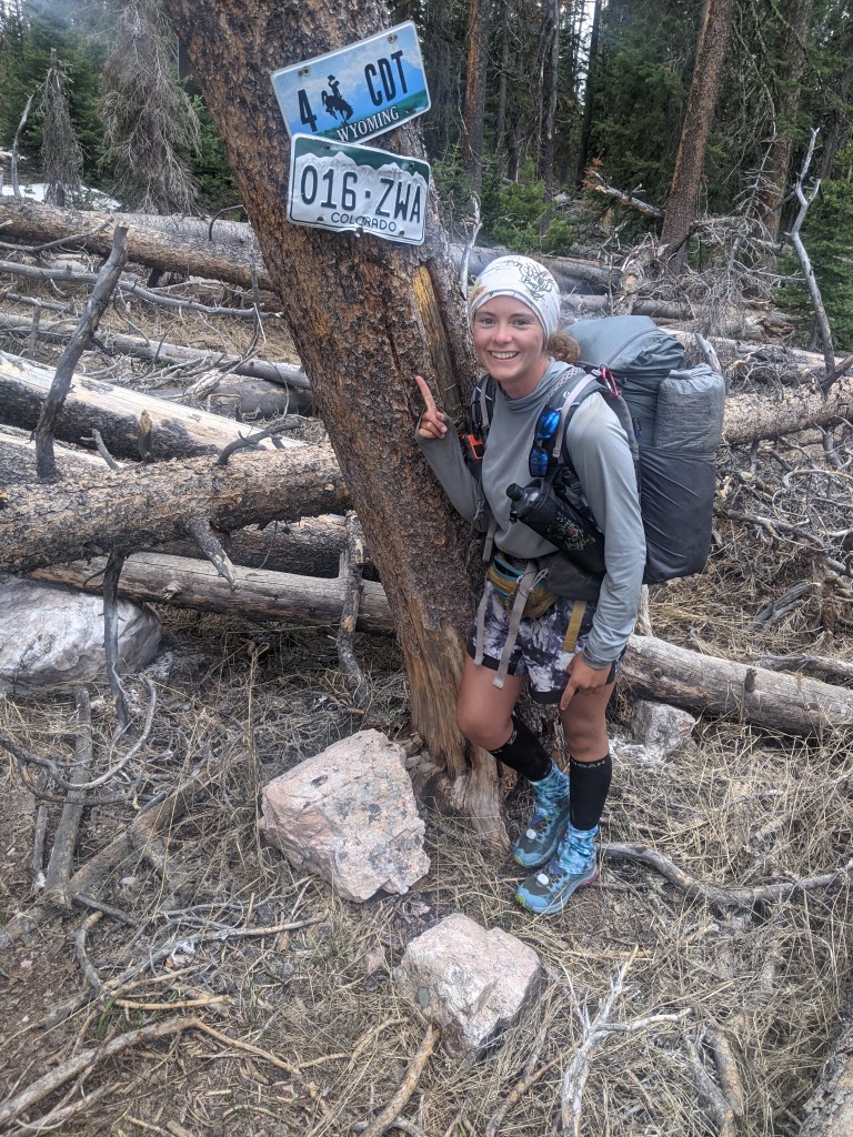 We did a little dirt road walk around one part of the trail to avoid some un necessary elevation gain and a bog. After such a hard day and so many more hard days to come it didn’t care. We might as well take a chance to avoid as much very difficult snow as we can. It’s very likely that whole section of trail was covered in deep snow drifts because it was at a higher elevation. Around 6pm we reached the Colorado Border! The thunder was starting to boom very loudly as we took our pictures. As soon as we found a spot, we wasted no time setting up our tents. As soon as I crawled into mine and got everything inside, the rain started to come down. Luckily it only lasted about an hour. For dinner I made hash browns minus the frying part with some jalapeno cheddar cheese dip. It was very filling and awesome to eat after such an exhausting day. I’m so happy we made such good timing to camp! There were a couple times today where I questioned if we would even be able to make it to the border tonight because we were having to hike so slow. Not only did we make it, but we made it in great time! I’m feeling a lit more optimistic about tomorrow.