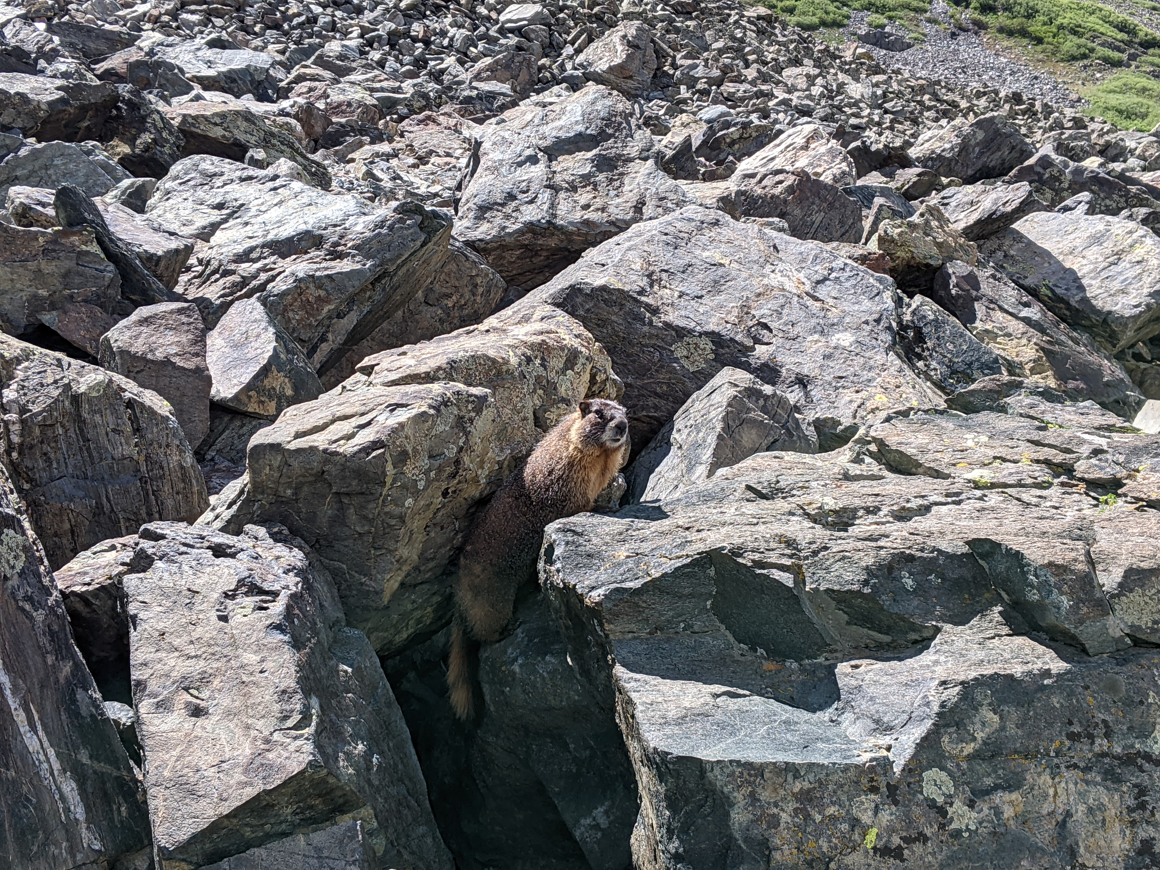 When I started climbing the mountain right after the road, the sky wasn’t looking great and it honestly freaked me out. I still climbed to the top because it wasn’t very far and there were lots of other people still hiking around. At the top I sat down in the rock bivy to hide from the wind. I saw Daly and Smiles at the base so I decided to wait for them to see if they were going to bail or not. After they didn’t show up in a reasonable time, I peaked out of the rock bivy and saw them hiking the opposite way. They must be bailing! I descended the mountain almost back to the parking lot trying to catch up to them. If they were bailing I figured it was probably a smart idea to do the same. Once I descended most of the mountain, I saw them hike off in a really weird direction off the side of the mountain. I peaked over the edge and it looked like they were just getting water. They were too far away to say anything to. For some reason I felt really dumb about not doing my own thing so I hiked back to the top of the mountain. The weather looks awful for the next couple of days, especially tomorrow. I don’t have time to go to town and wait it out like I wish I did. I decided to keep hiking south alone even though the sky was looking bad.