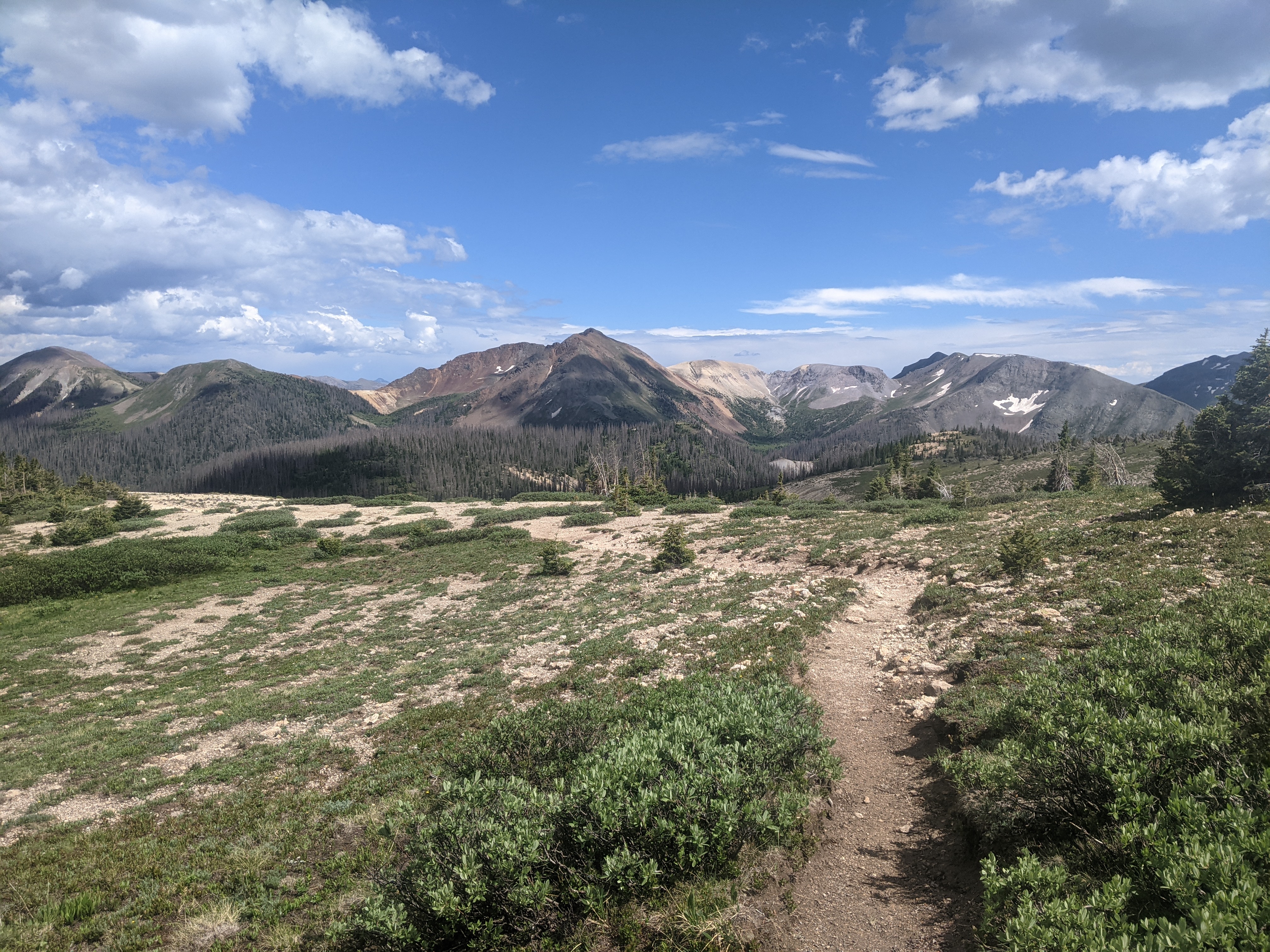After lunch, we walked along the coolest ridge. There were hardly any trees on top and the views were amazing. Eventually we descended into some trees and I was very glad because the once clear blue sky was filled with clouds that were getting increasingly dark and thundering louder and louder. When it finally looked bad enough, 12 pack and I set our tents up in perfect timing for it to start raining. The thunder boomed and I was so happy to be curled up in my sleeping bag trying to get any sort of sleep. After 2 hours the storm had passed, the sky was blue again and we were hiking on! We only had about 8 more miles to camp.