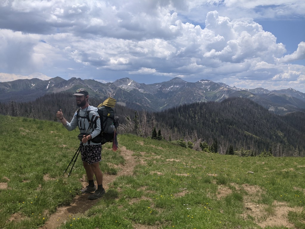 We started hiking south from Wolf Creek pass around 8am. The climb up to the top of the ski resort wasn’t bad at all. It was graded very gently so the climb was long but not steep! At the top I broke out some root beers that I carried for everyone to share. It’s Jenga’s favorite beverage and I wanted to surprise him. After the top of the ski resort, we started to descend in a beautiful forest. I absolutely love seeing everything in bloom and walking through the tall green grass. Around noon it started to rain a little bit and it looked like it was going to storm really bad. When we got water about 10 miles in and found a flat spot to set up our tents we took a break while waiting for the storm to pass. I ate a lot of snacks in my tent and tried to take a nap. As much as the thunderstorms really suck, I don’t mind taking a two hour break in the middle of the day all cozied up in my sleeping bag. It’s really nice!
