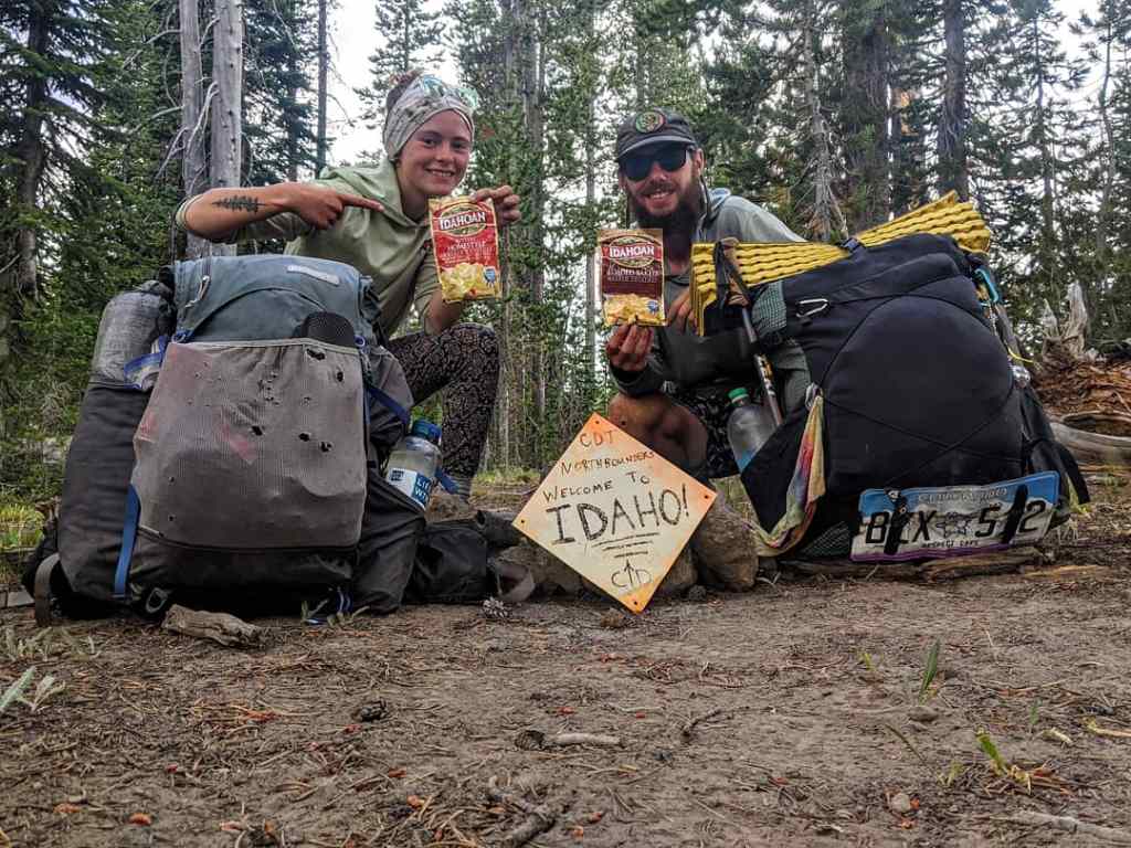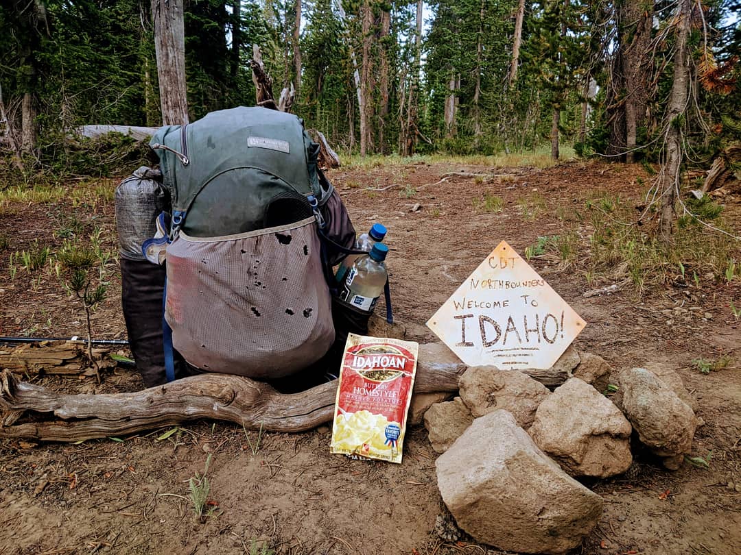 I cooked some Idahoan mashed potatoes for dinner to celebrate. I put a mustard packet, Tabasco, and old bay in them to make them very tasty. It was a great meal to celebrate the new state I’ll walk in. When we got to the water source we had to walk a half mile off trail to a creek. We were in an area with lots of snowmobile trails and cabins marked on a map. I saw that one might be near us so I took the time to look around for it but couldn’t find it. We found a flat spot to camp in a ditch on the side of the road. I had a little bit of service at camp so I could text and it was so nice! That almost never ever happens.