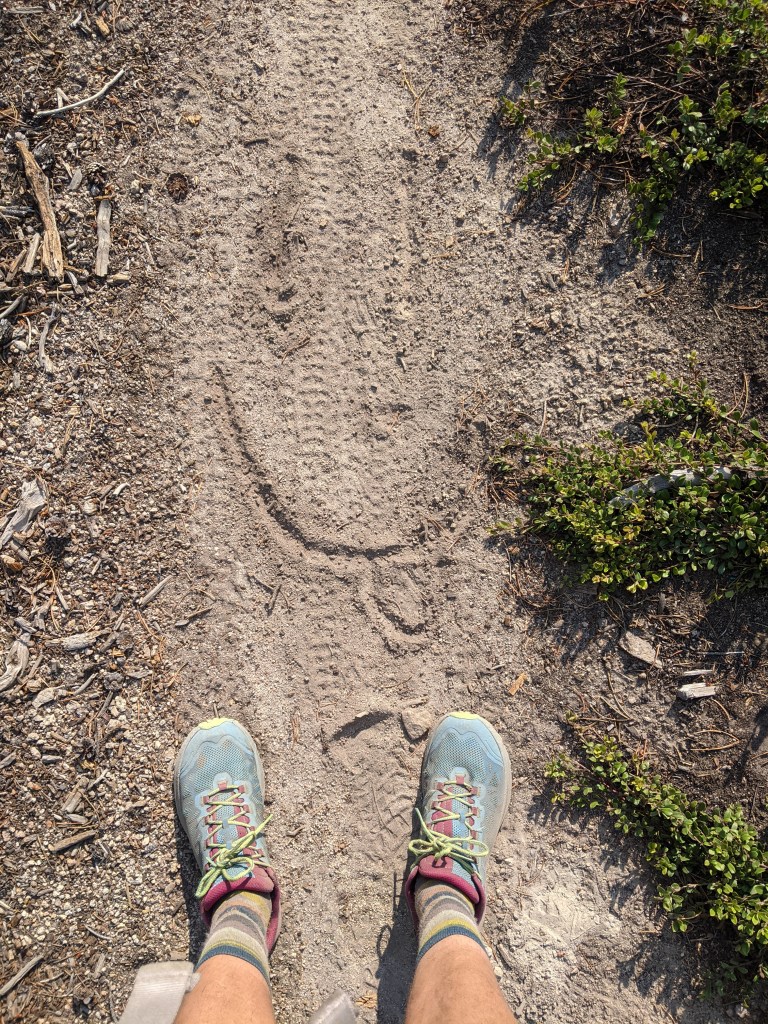 The day was hot and dry once again. I caught up to 12 pack and we took our next break together at a water source. It was early afternoon and we were only 9 miles from our planned camping spot. Time to kill time! I made some PB and J sandwiches and enjoyed just sitting down on the side of the trail doing nothing. I washed my feet in the cold stream and also soaked my sun hoodie and let it lay out to dry. After that I hiked 3 more miles to the last water source of the day at a small stream. I cooked some mashed potatoes for dinner and took another one hour break. There were about five more miles left to camp. I noticed the smoke was very bad as I ascended a small mountain to camp. It’s probably the worst smoke I’ve seen since we started. It was thick and I could hardly make out the mountain ridge closest to me. I kept hiking until I ran into some NOBOs at a trail junction. It was Shepherd, Ohm, and Carrot. They just got back on the actual CDT at this point from their reroute they did around the fire. A lot of other hikers took a route called the Big Sky/Super Butte alternate that is about 200 miles shorter than the actual CDT that 12 pack and I hiked. Even with skipping the road walk we still walked a significantly farther distance. I’m so happy to see hikers again! After we flip flopped so many pros were about 1-2 week behind us. Since we slowed down a bit and also hiked an extra 200 miles a lot of people are finally at the same spot as us. I’m so happy. I haven’t enjoyed only seeing the person I’m hiking with very much. I’m thankful I had someone to hike with but I’d rather be alone sometimes than only see a single person. I missed the social aspect of the trail so much. I stopped and chatted with them while 12 pack caught up. We walked one more mile and set up our tents at a nice flat spot.