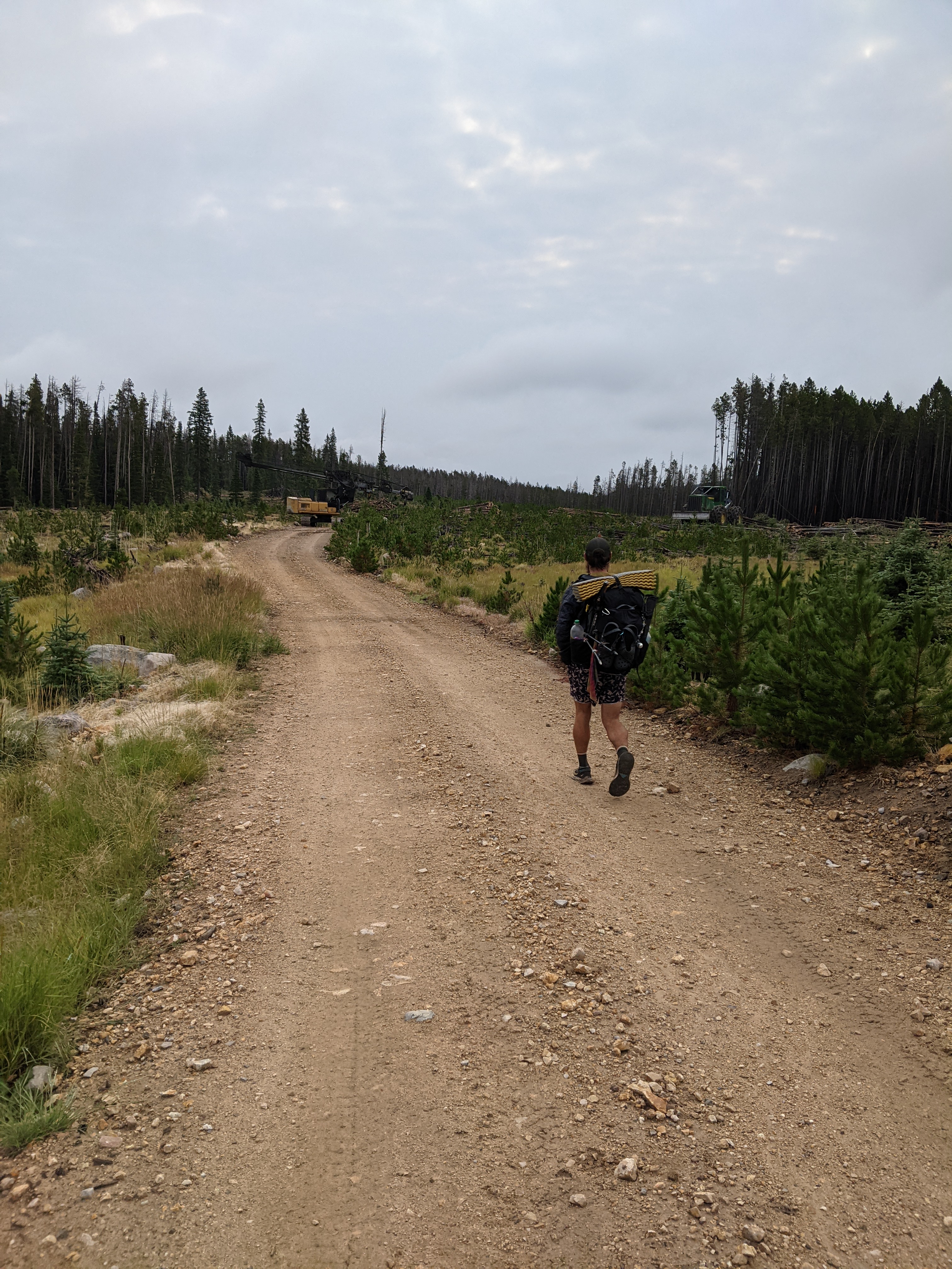 The trail eventually lead to some dirt roads that I walked on for quite a while. I passed a logging operation that I could actually hear going on very early in the morning. I thought it was a chain saw but it was some machine that strips trees of their branches. All the logs and debris were put into giant piles. When I had to pass the machines and people doing the work, they were right in the middle of the road. I’m glad they saw me and stopped as I walked by because they were big and intimidating, not to mention very noisy. Right before the roads turned onto a trail, I found s cooler of trail magic. A welcome surprise. A couple who has a daughter hiking the PCT this year put it out. I had a sprite and an orange. I was so happy they put fresh fruit in there. It’s been the #1 thing I’ve been craving lately. It was delicious. I signed the log book that was included before moving on. The trail went through a lot of blown down trees. It looked like a lot of trail work had been done but there was still a good amount of trees to step over which slowed me down a lot. I was just feeling very tired today and a little antsy to be done hiking. I finally reached the road around 3pm. 12 pack and I tried hitch hiking for about 40 minutes before someone pulled over for us at the busy highway. A nice gentleman going into Helena took us all the way to our hotel.
