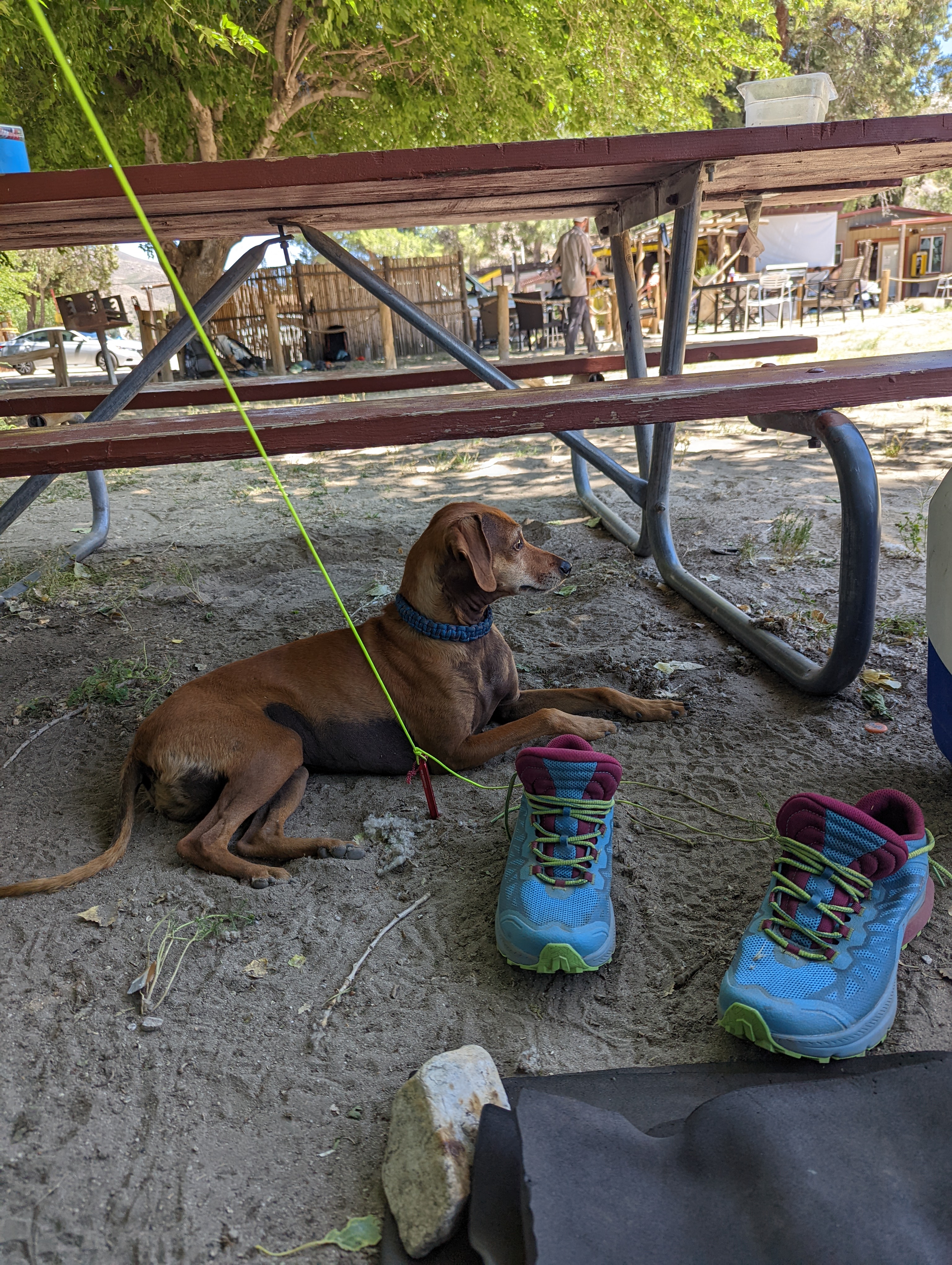 I was absolutely dreading all the days I’d have to take off trail. I really don’t enjoy taking more than one zero at a time when I’m on a thru hike. A day of rest is nice but after that I get bored and antsy to go hike. The first three zeros were surprisingly enjoyable despite all the anxiety. I camped the first two nights on the trail. One was with Angus and the other was was Cam, Dirt Magnet, Rainbow, Jasmin, and Spice Rack when they caught up. On zero day #1 I went into the town of Acton with Jasmine and Spice Rack a couple in their esrly 40s if I had to guess. I stocked up on snacks for the next few days and we ate at one of the only restaurants in town called the 49er. I got a salad and a BLT sandwich. This is the only time I would actually go into the town of Acton on all my zeros. I also had a telehealth appointment with Morgan that day. She originally thought I might be experiencing exertional compartment syndrome and that the swelling would go down eventually and I would be able to return to activity in 3-7 days. She showed me a taping method to relieve swelling and a lymphatic massage. The KOA let me use a cooler that was sitting by the hiker box so I was able to keep a bag of ice by my tent at all times and I iced throughout the day.