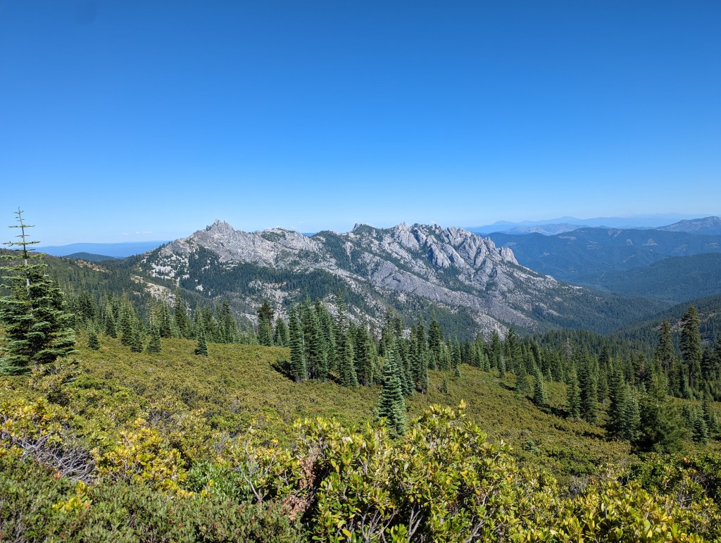 We got dropped off at the trail at 9:30am. It was already hot. There were about ten other hikers also getting dropped off too. Today the hike was almost entirely uphill. It felt never ending at times but luckily the grade wasn’t too bad. The trail went through castle crags State Park so it was signed very nicely. The first part of the day was mostly shaded and then it was exposed for a long time. I was happy I packed out a burrito. It tasted better on the trail then it would have in town. When it was exposed and hot I could see a good view of the Castle Cragg. I know it was in the 90s. I stopped about every six miles or so at water sources. The goal was to get thirty miles out of town today but it was hard to do with a late start. I knew I would end up having to hike in the dark. Midnight ended up taking a couple hours long break to avoid the heat and falling behind Diva and I. I hiked the last part of the day talking to Diva which was nice, especially when it was dark. The sunset on the way to camp was amazing. I love hiking at that time of day but not much longer after. It was 10pm by the time we got to camp and I was so exhausted. I looked at the elevation and we ended up climbing 7.7k of vert today. After Shasta that was a super hard day. No wonder I was feeling so tired. My muscles were hurting in ways they don’t normally hurt. I think it’s because Shasta was so steep it used different muscles. I set up a cowboy camp close to Diva’s tent and fell asleep looking at the stars.
