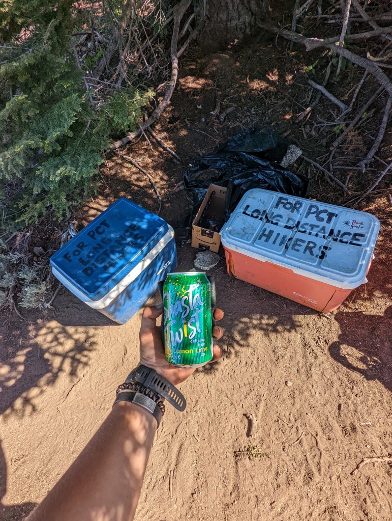 After the break, it was uphill for a while. I hiked so fast without even thinking about it. I was on my phone as I hiked because it was the first time I had cell service in a while and I was telling my family I made it to Oregon! At the top of the climb was a cooler stocked full of sodas. Could Oregon be any more perfect? I sat on the cooler for a while taking another long break and watching as my friends climbed the hill in the distance. I had a lemon lime “Shasta” soda. I was so stoked about it because I had views of Mount Shasta this morning and I’ve been wondering where all the Shasta soda is sold!