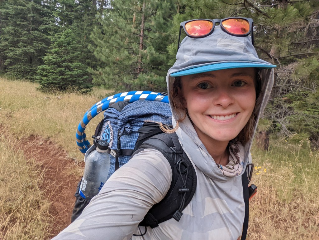 At the water source, I used my gravity water system for the first time. I am so grateful. All I have to do is fill up my bag, connect the filter and water bottle, and then hang it up and it automatically filters while I relax or do other camp chores. I can’t believe it’s taken me this long to do that method of filtering but I’m so stoked about it. I’ll share a picture of it on another post. I ate my rosemary break with cherry tomatoes and hummus for my morning snack. The sole of my right foot was feeling raw from my shoes and I was nervous about my feet hurting this section.