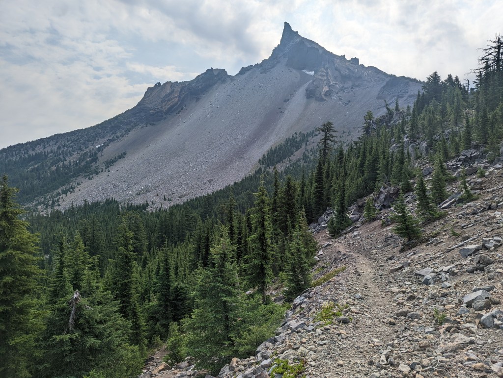 I hiked another 7.7 miles to Thielsen Creek. My feet were hurting and the second I got there I took off my shoes and started rolling them with my cork ball. It was a scenic spot with a great view of Thielsen Peak. The water was ice cold. I soaked my feet in the creek for a few moments but it was so cold it was painful and I had to take them out quickly but it totally helped! I filtered water and ate some snacks. Six miles later Diva and I took an hour long break at a great view in the shade. I rolled out my feet, stretched, ate, and just laid down trying to close my eyes. Break time goes by so fast!