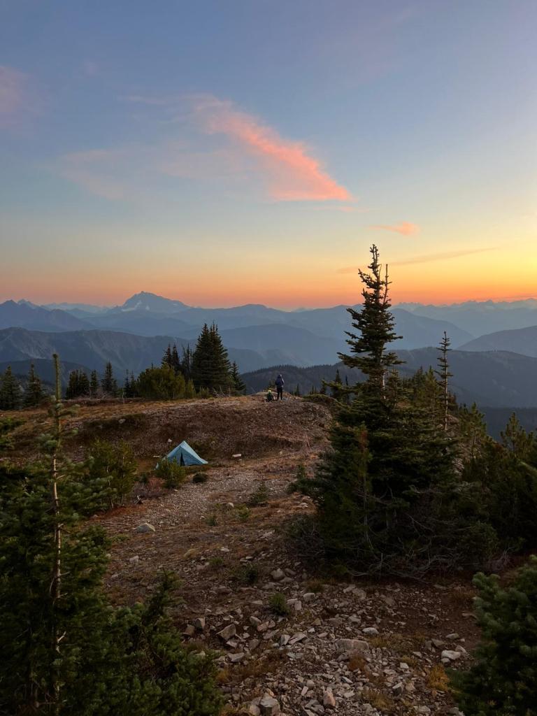 I was in my head all day while I was hiking alone. Mostly thinking about the last 2,000 miles on the PCT and all the things that had happened between then and now. There were so many unknowns the last time I was walking towards Canada. I had absolutely no plan for getting off trail or what I would do next besides being completely open to any opportunities that came my way. After a lack of direction while we were still on the trail, Diva told me she thought it was time I pick my own path if one had not been presented to me. When I got off trail last year I hiked across the Olympic Peninsula alone on the PNT, one of the most challenging things I’ve taken on solo but could have been due to my lack of planning and poor head space from getting abruptly pulled off the PCT. I got a big tattoo, played around Northern Montana, bought a new car, recertified my WFR, thru hiked the Foothills trail with Chewy, fell into the worst post trail depression I’ve ever had, applied for a ridiculous amount of seasonal jobs and tore my ACL and fractured my Tib/Fib Plateau the week before moving to Big Sky Montana to be a ski instructor. Those two months felt like a trainwreck of a time putting my life back together for at least the near future. I knew that that next year I would pursue becoming financially stable again and building into a new community. I very much questioned my identity as a thru hiker and that winter I found myself surrounded by an amazing new friend group but no one who would truly understand what I had spent the past four years chasing. This summer I feel that I finally fully recovered from the PCT Mentally and physically. I have gotten to hike my remaining fire miles on the PCT and CDT as well as many other local peaks, mountain ranges and trails I’ve had on my list. There is a new partner in my life who I get to come home to. I work two awesome jobs that give me a great schedule to fill my free time exactly how I want to. Things look a lot different than they did only a year ago. The end feels like a new beginning rather than a cliff I’m about to jump off.