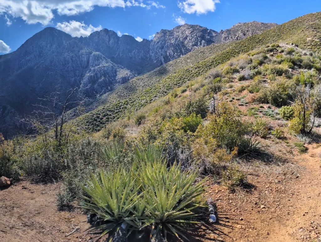Becky dropped me off at the Vineyard Trailhead at 8:30. The drive back down the mountain went by so fast. I learned so much from Becky about the specific part of Arizona I was staying in. She is a volunteer for the Tonto national forest and she was giving a tour of some cave dwellings today after she dropped me off. She also has an extensive knowledge about Arizona native plants even though her and Scott have only lived in Tonto basin for four years. She told me that the Saguaros I saw near Roosevelt were the last that I would see heading north and that they mark the northern edge of the Sonoran desert which I am leaving behind. Climbing out of the trailhead the trail went very steep up a hillside covered in Palo Verde plants and cactus. There was no shade at all. I made it to Mills Ridge in three hours, took a short break and weighed my pack down with my food bag again. It didn’t feel as bad as I was expecting maybe because I already got so much of the climb out of the way. Shortly after Mills ridge I entered four peaks wilderness area and the trail continued to climb steeply. Luckily there were lots of water sources everywhere and I took many breaks including one with another hiker named “Baguette”. I hiked alone the whole day except for chatting with Baguette at two different break spots.