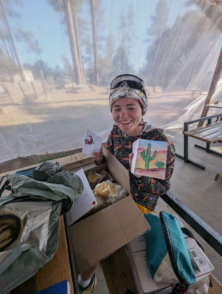 The lava rocks felt never ending today and the trail dropped down off the mesa to a creek before climbing back up again. I could see the mogollon rim I will be climbing up tomorrow far in the distance. I made it to Pine at 2:30pm. I walked straight to the brewery that my friends send my packages to. It was only 0.3 miles off trail. I sat down with a bunch of hikers I didn’t know and ordered a flight of six different beers as well as a salad and brisket sandwich. It was here that I finally met a girl named “Late Start” that I have been hearing about for a while. I found out the brewery didn’t have my box and it might be at the post office so I hurriedly are my food and drank my beers so I could run a mile down the street before the post office closed. Upon arrival at the post office I learned that they had one of my packages but the other one must be back at the brewery. How frustrating. It’s not the first time I’ve literally ran miles around a town to track down a package. This is why I often opt to just resupply myself. I was really looking forward to this resupply sent by some friends I have in Bozeman as well as my rain jacket and alpha direct hoodie that I asked my fiancé to give them. I dropped my things in the tiny cabin I rented in the center of town before running back to the brewery. I ordered another beer as well as desert and picked up my box while hanging out with the crew that was still there. My friends sent me the best resupply ever with the sweetest notes. It felt like the pick me up I really needed after a tough section. After finishing my desert I walked back to the cabin and layed down for the rest of the day. I did most of my town chores after 10pm at night.