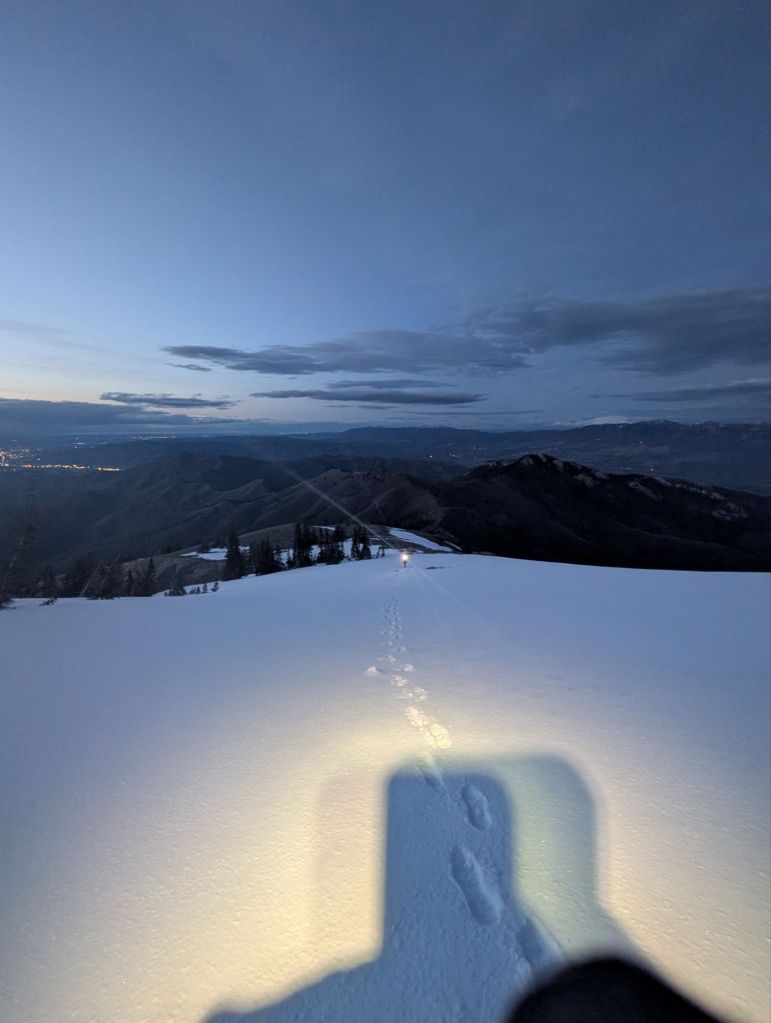 Notes: We did the last 20 miles of the Scout Mountain course! We have been wanting to do this together for so long. I couldn’t believe Michaela suggested that we start it after 5pm on a Wednesday night but I said YES! And I’m so glad I did. This was such an informative run for me. I was surprised by how steep the descents were and how shallow all the vert was. It was a lot of vert but the downhill felt worse than the uphill. Michaela was the best tour guide and I am really looking forward to her pacing the last 23 miles for me. I felt extra fatigued during this run but it was a great simulation of what mile 100 will feel like. This race is going to be super tough to finish! We got to the top of Scout Mountain right at sunset and the temperature dropped dramatically but luckily once we went down in elevation it got warm again. Conditions were predicted to be very stormy and we got lucky. We didn’t get back to the car until 11:30 pm. What an adventure.