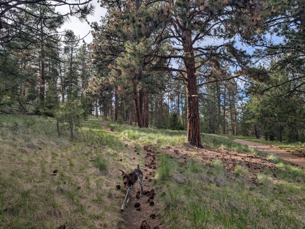 Notes: Twig and I went to Missoula to check things out. I think this will be our regular off leash running spot! It was soooo pretty. The ponderosa trees were outstanding and something that is very different from Bozeman. The trail network here was really convoluted so I spent a lot of time looking at my map. I wish it was a bit steeper from the trailhead. I had the thought that Missoula people must be so good at running because the trails are so shallow they can actually run up the hills the whole time vs hiking like all of the steep stuff here in Bozeman! I can’t wait to explore the town more.